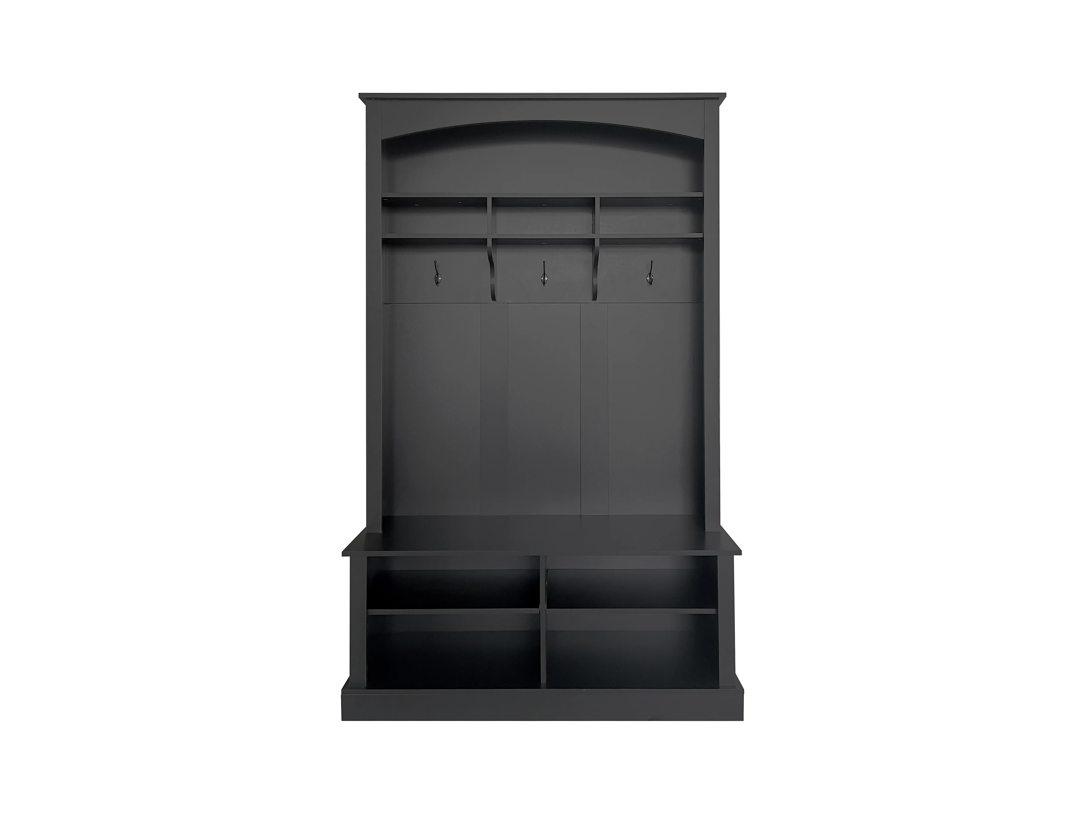 Entreemeubelset 120x40x191,5 met bank en haken, spaanplaat in zwart, voor woonkamer en hal