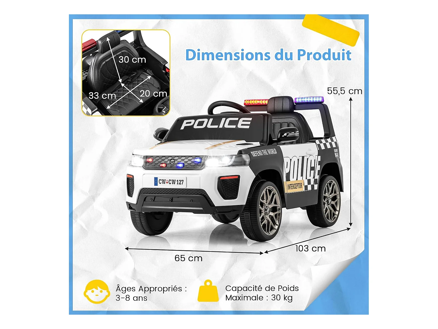 12V elektrische kinderauto met 2.4G afstandsbediening, 4x4 elektrische politieauto voor kinderen met muziek en led-verlichting, laadvermogen 30 kg voor 3-8 jaar