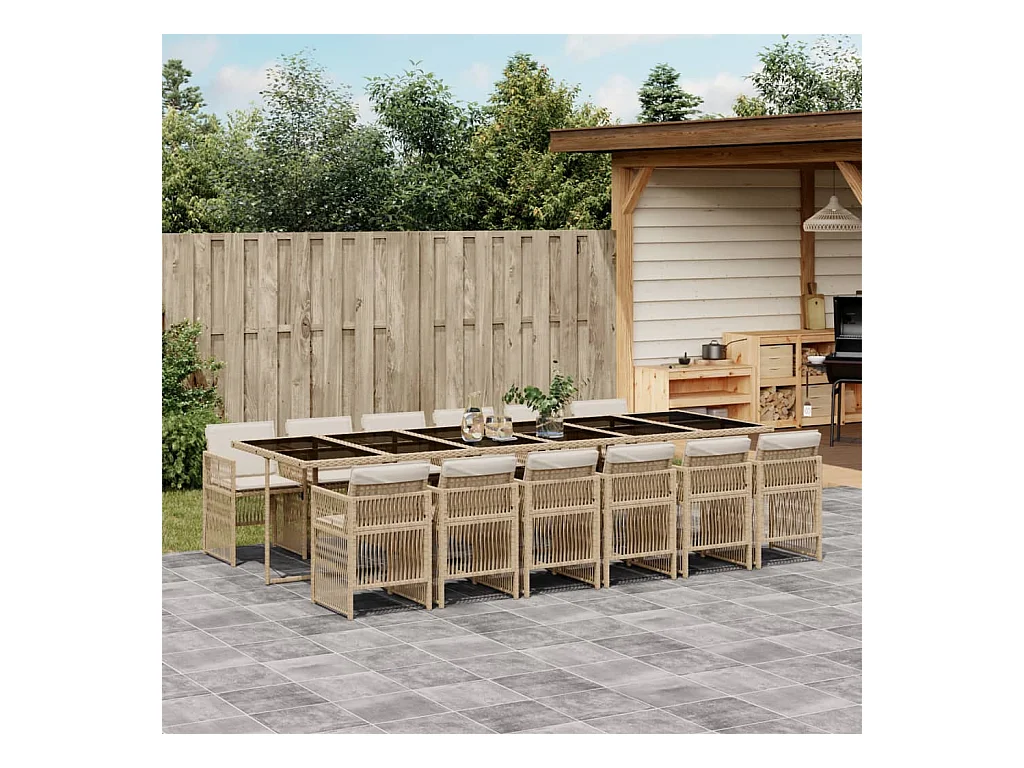 Tuinmeubelset met kussens 8 stuks beige geweven hars