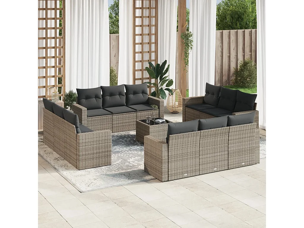 stuks tuinmeubelen met grijs geweven harskussens