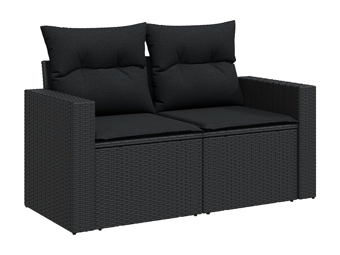 14-delige Loungeset met kussens poly rattan zwart