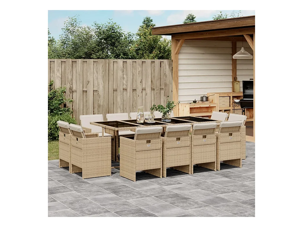 13-delige Tuinset met kussens poly rattan beige
