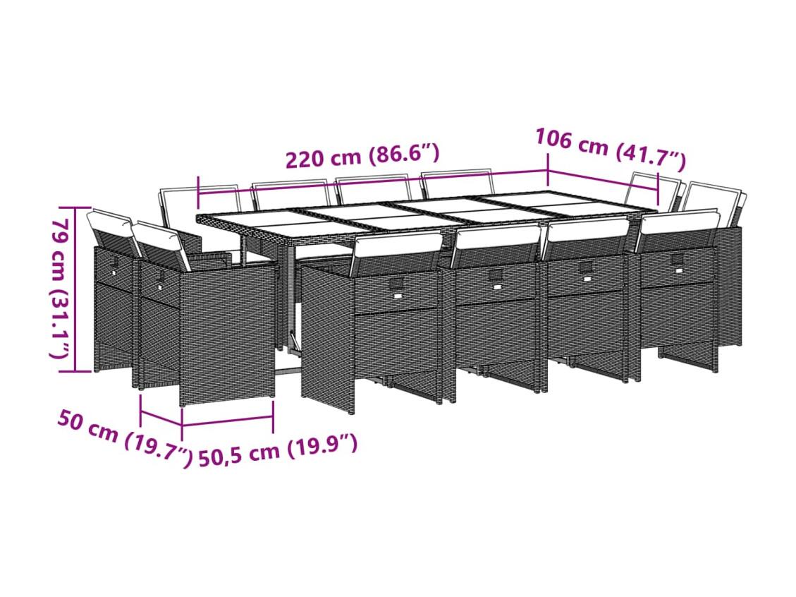 13-delige Tuinset met kussens poly rattan gemengd beige