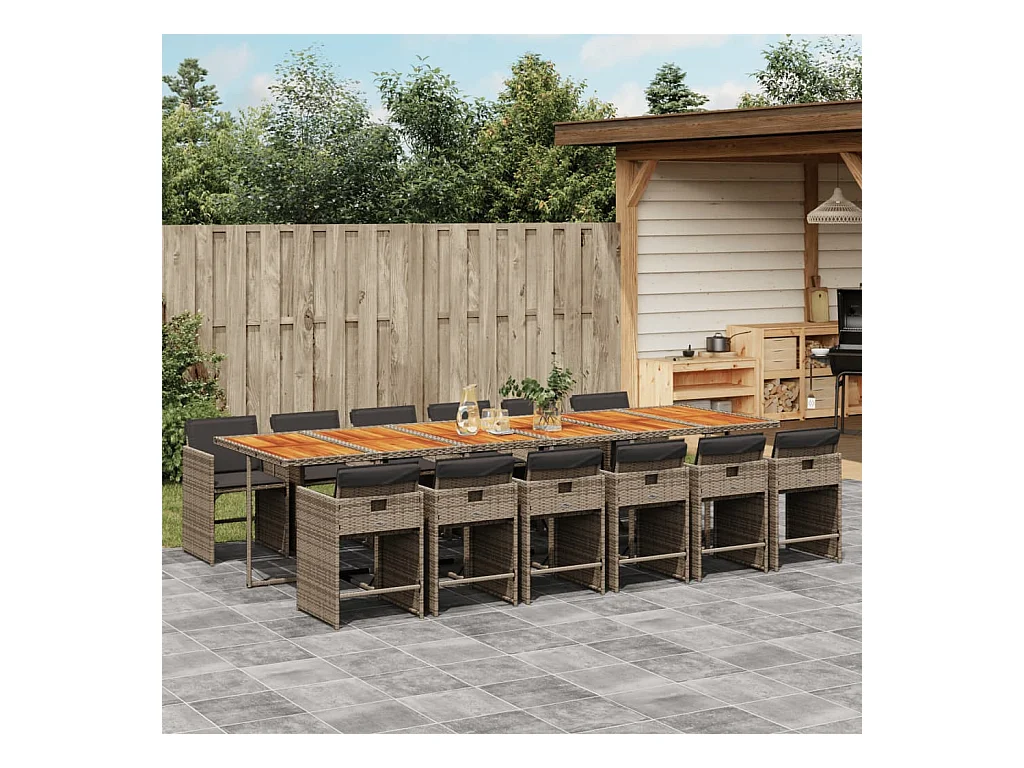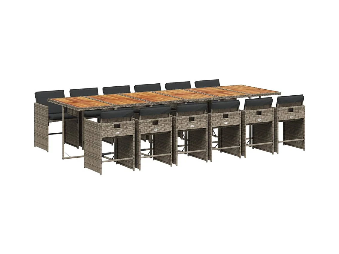 13-delige Tuinset met kussens poly rattan lichtgrijs