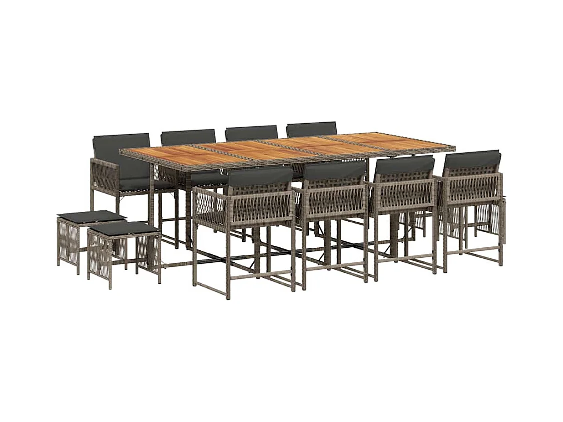 13-delige Tuinset met kussens poly rattan grijs