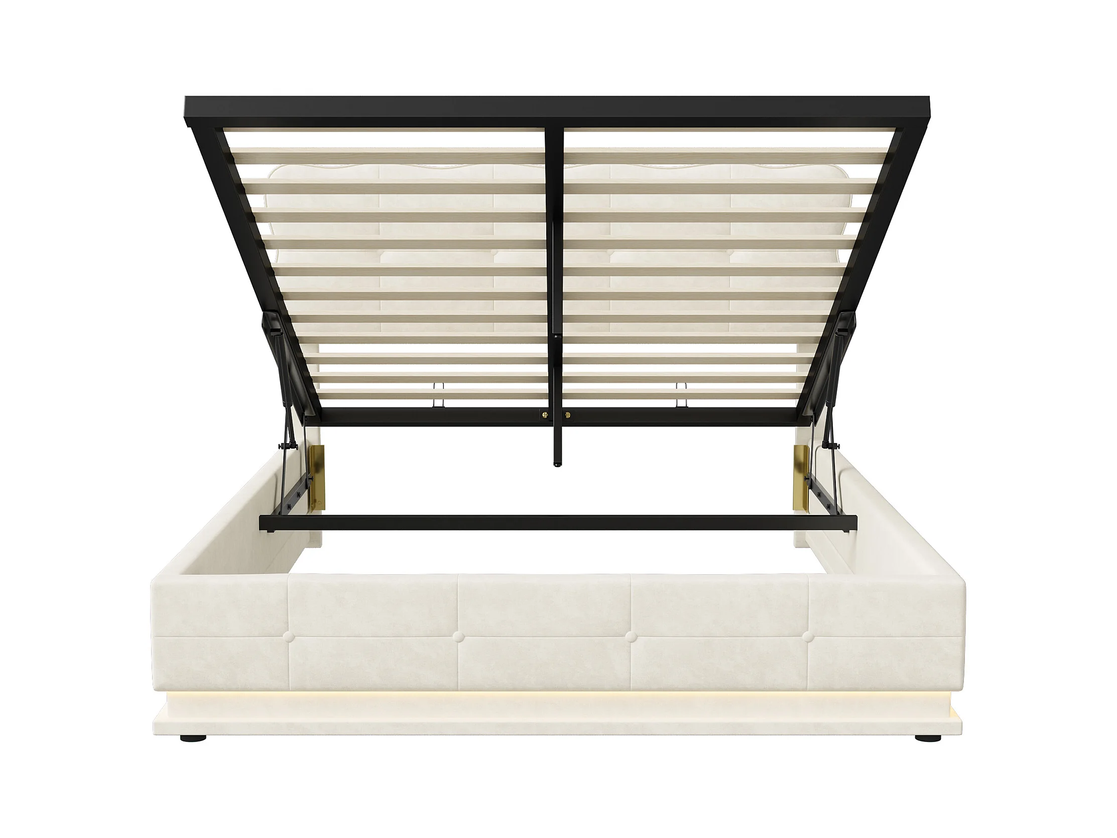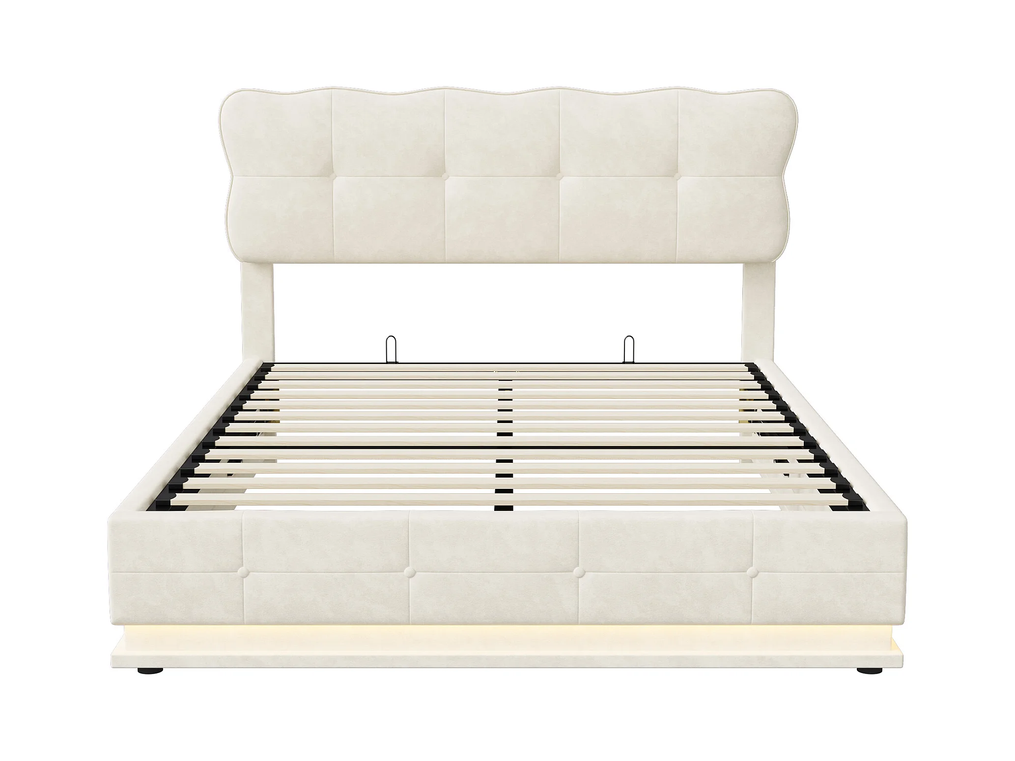 140x200 cm fluwelen opbergbed, hoofdeinde, lattenbodem, ruime opbergruimte, geïntegreerde ledverlichting, moderne hydraulische structuur, beige tweepersoonsbed