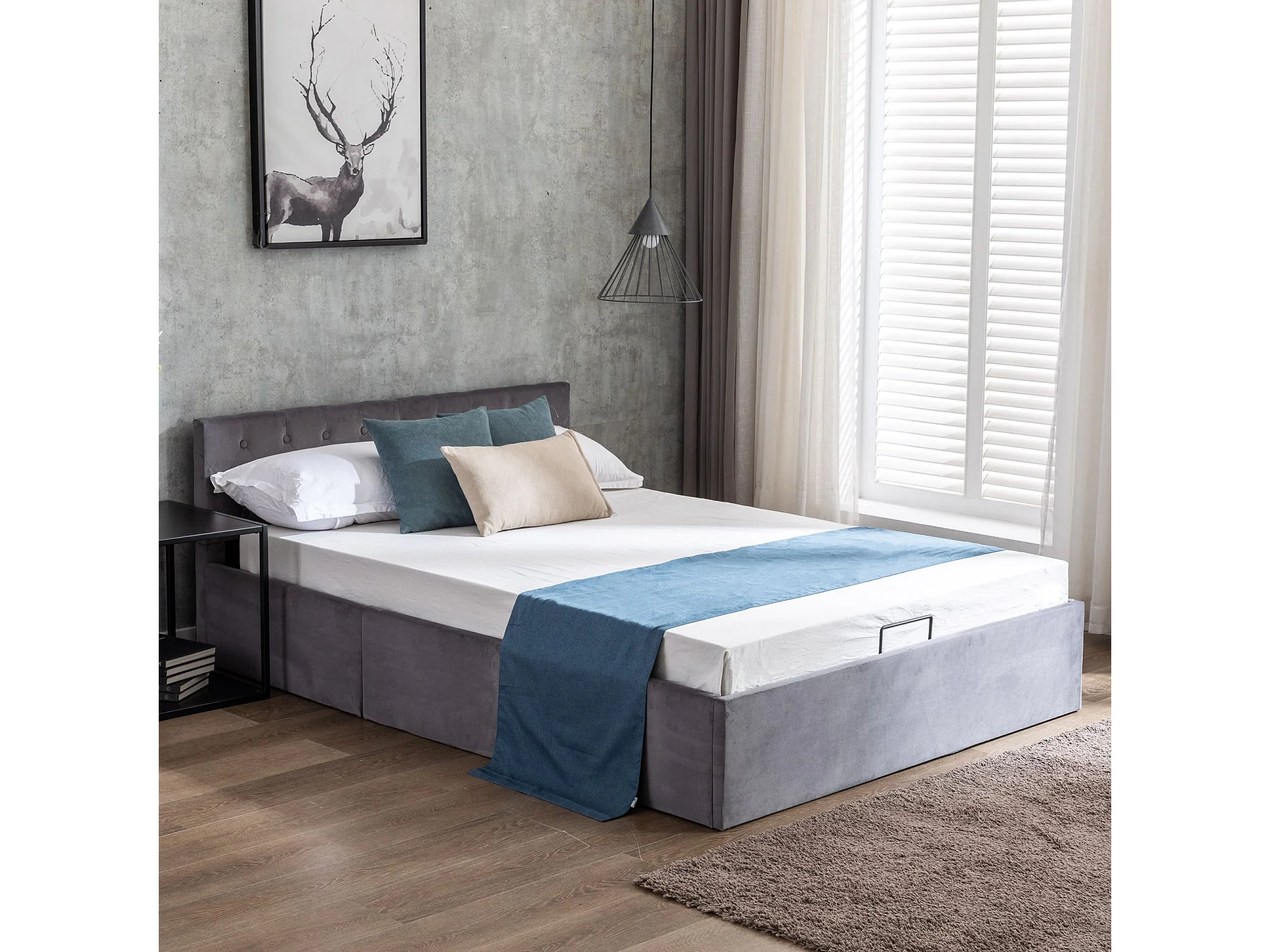 140x200cm Opbergbed - Tweepersoonsbed met gestoffeerd hoofdeinde - grijs fluweel - matras niet inbegrepen