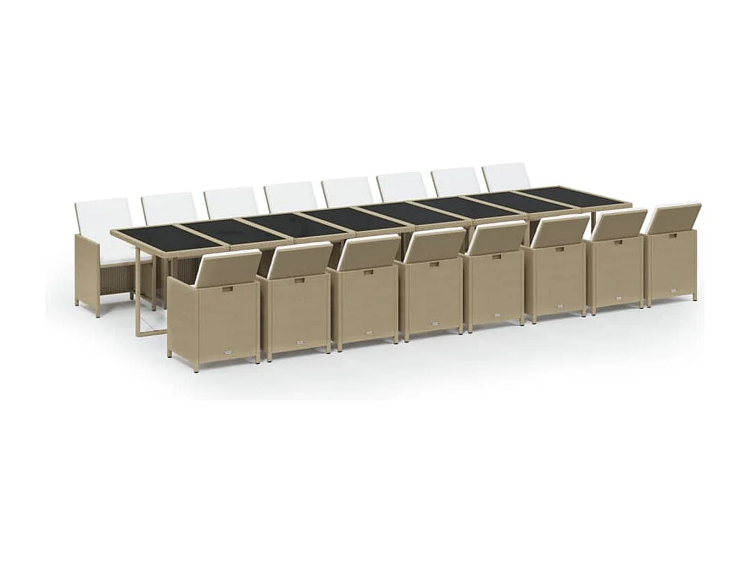17-delige Tuinset met kussens poly rattan beige