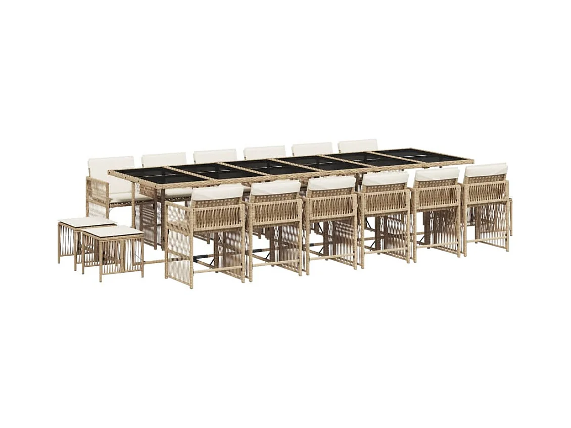 17-delige Tuinset met kussens poly rattan gemengd beige