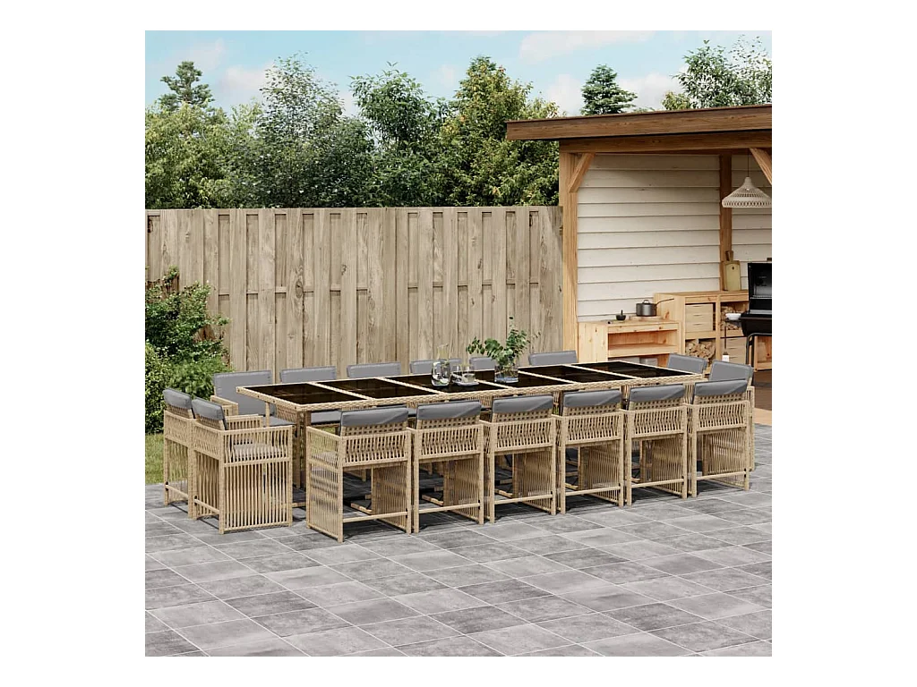 17-delige Tuinset met kussens poly rattan gemengd beige