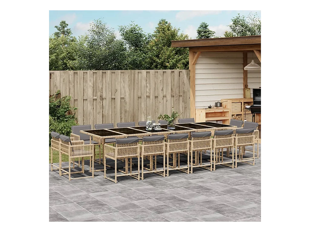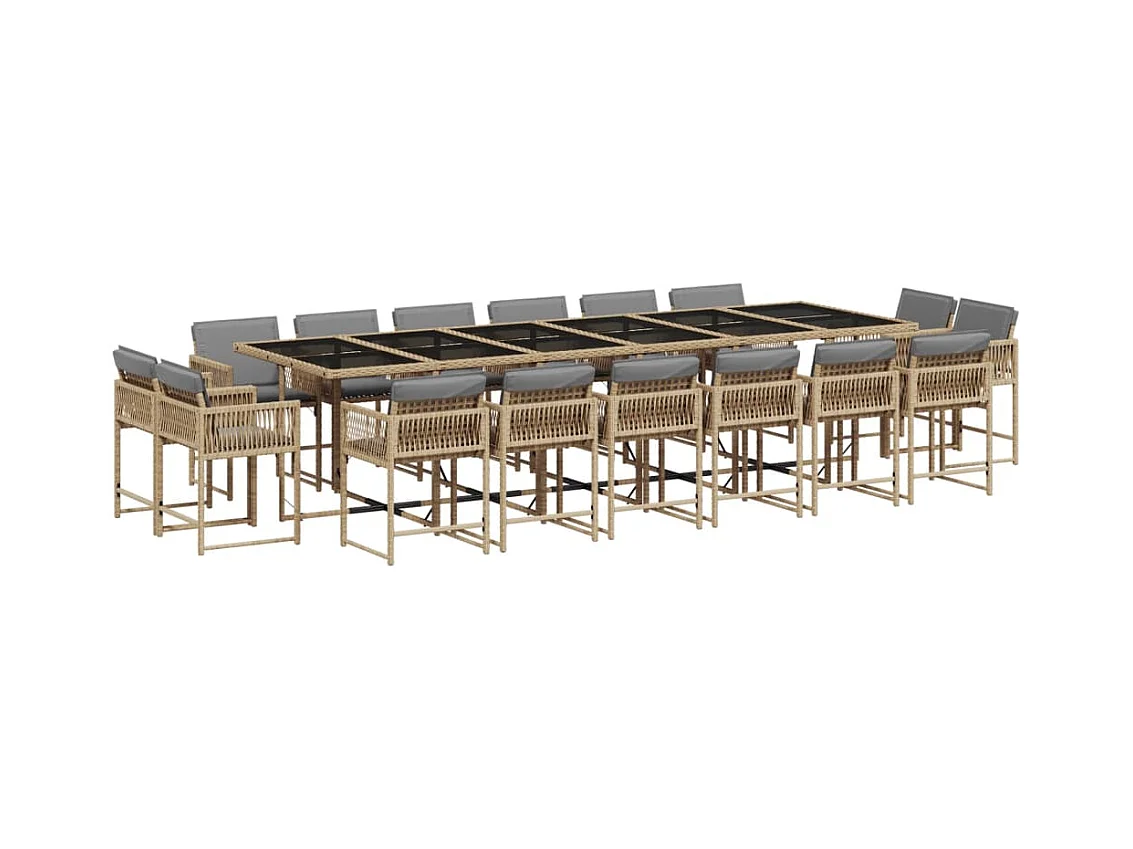 17-delige Tuinset met kussens poly rattan gemengd beige
