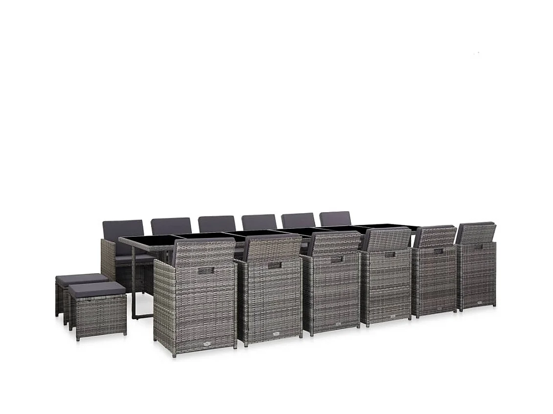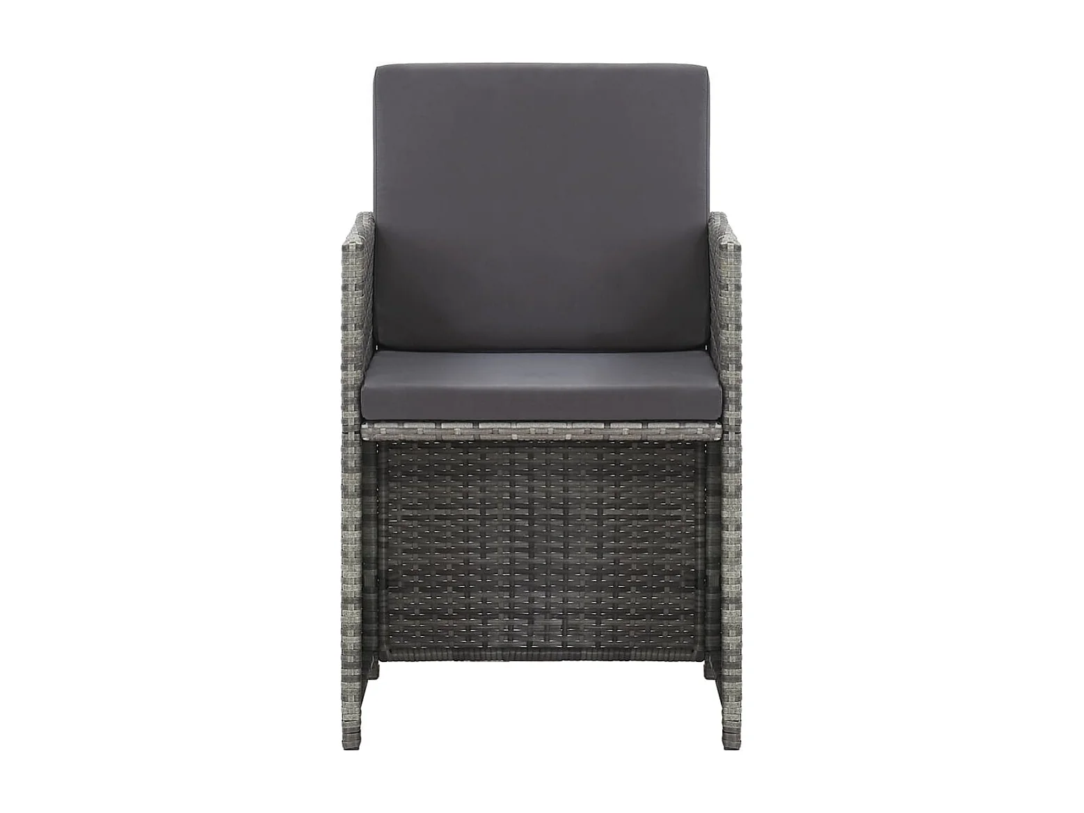 Eigentijdse 4-zits tuinset in zwart met grijze kussens en salontafel van gehard glas