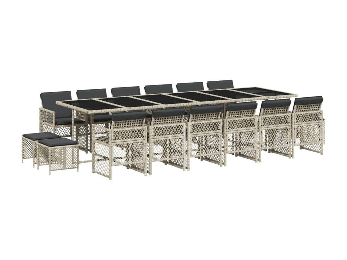 17-delige Tuinset met kussens poly rattan lichtgrijs