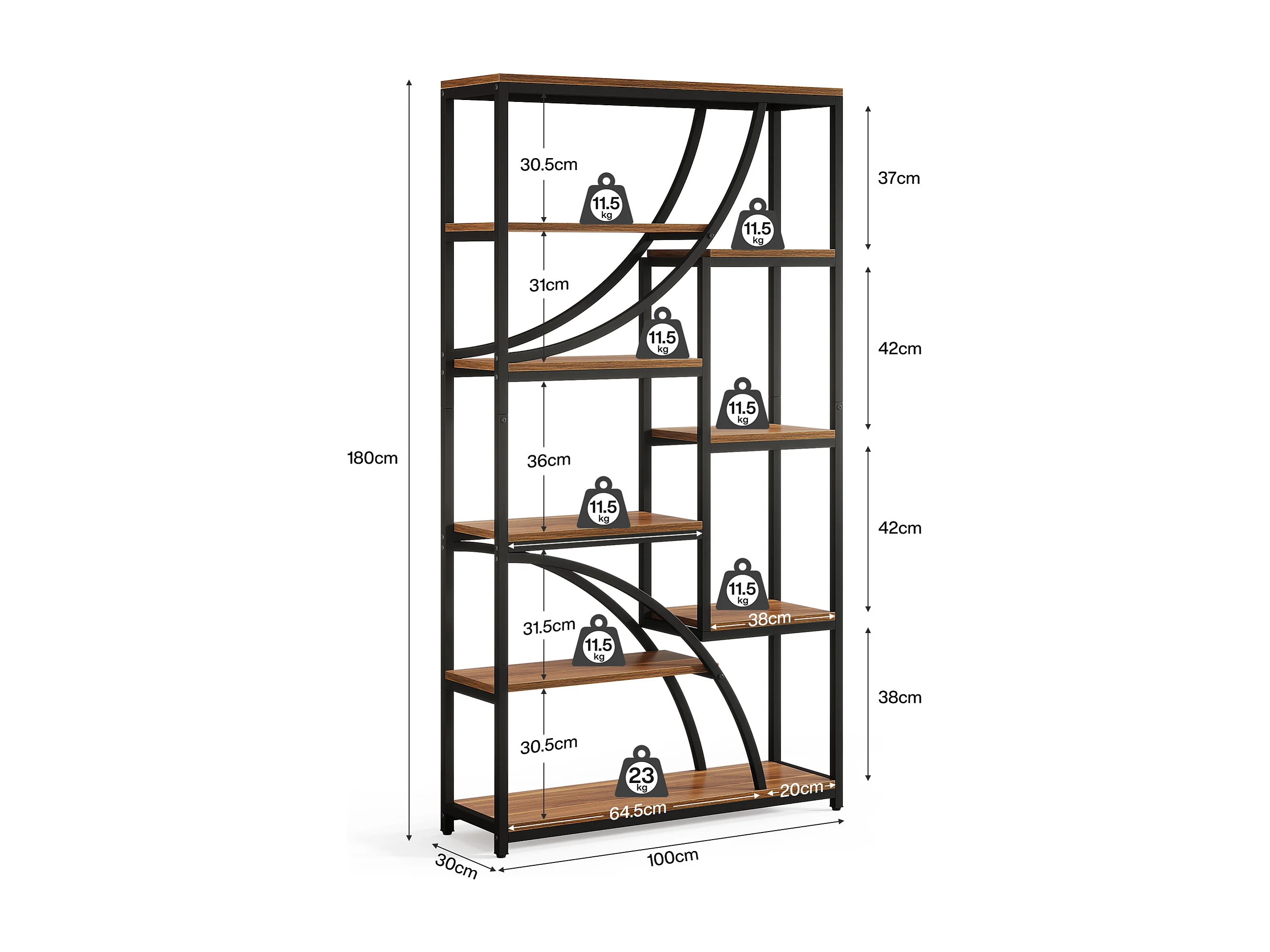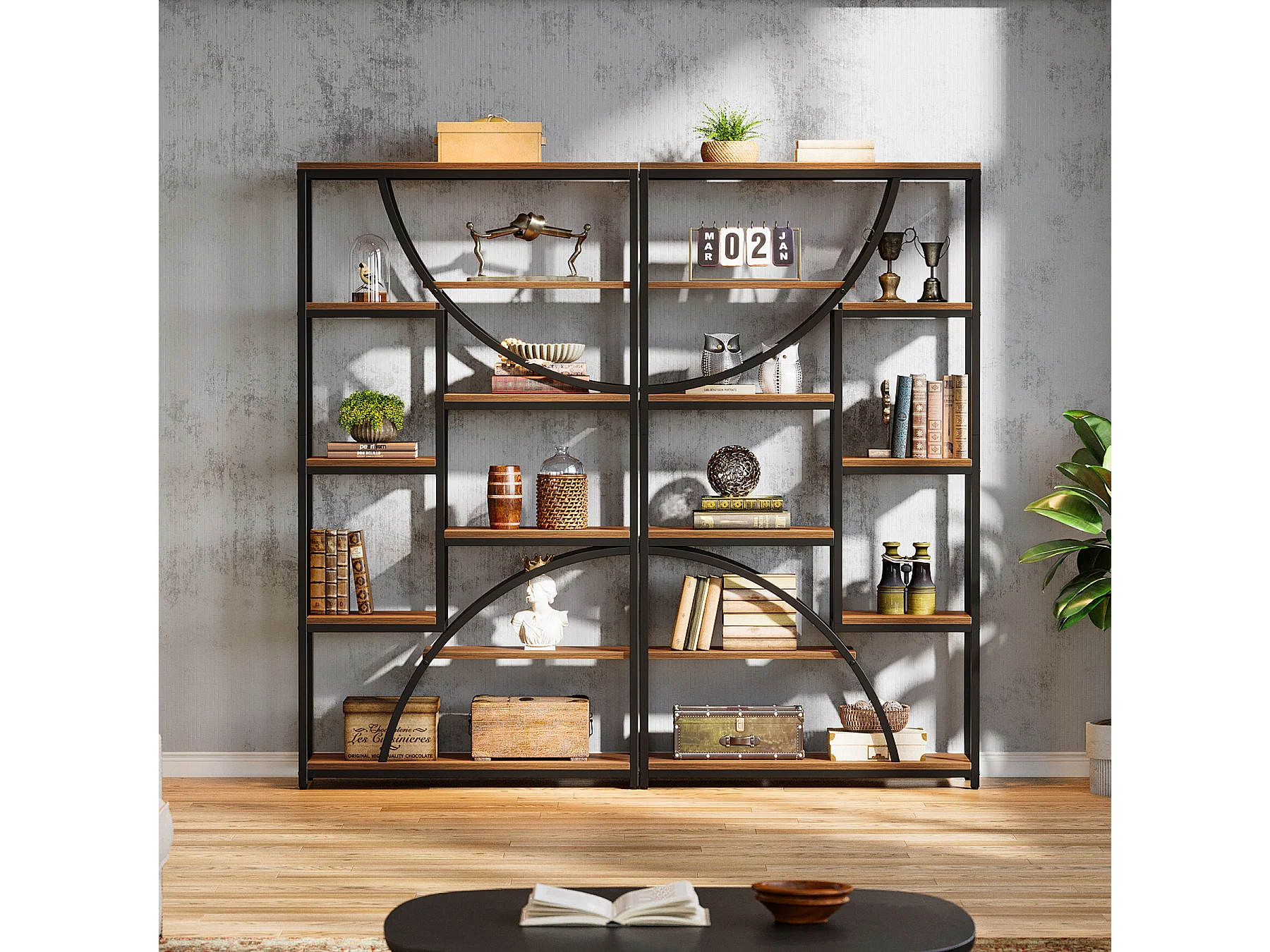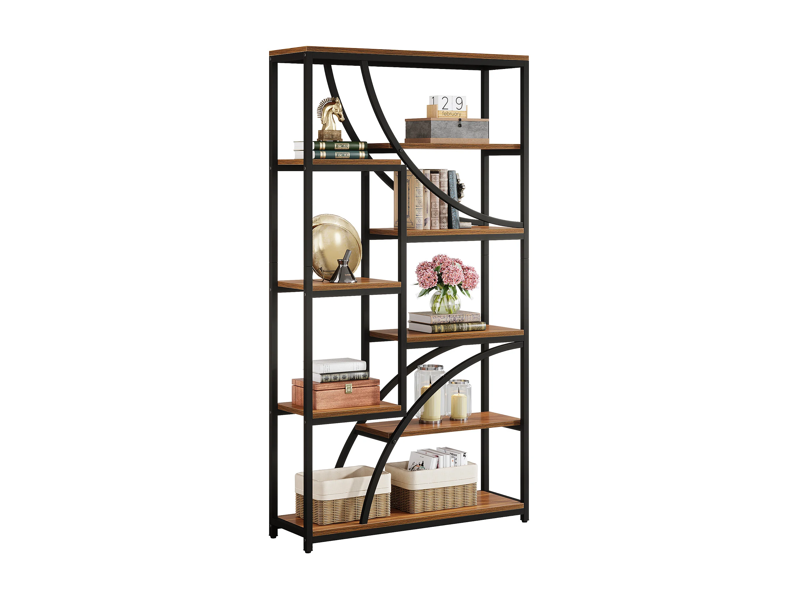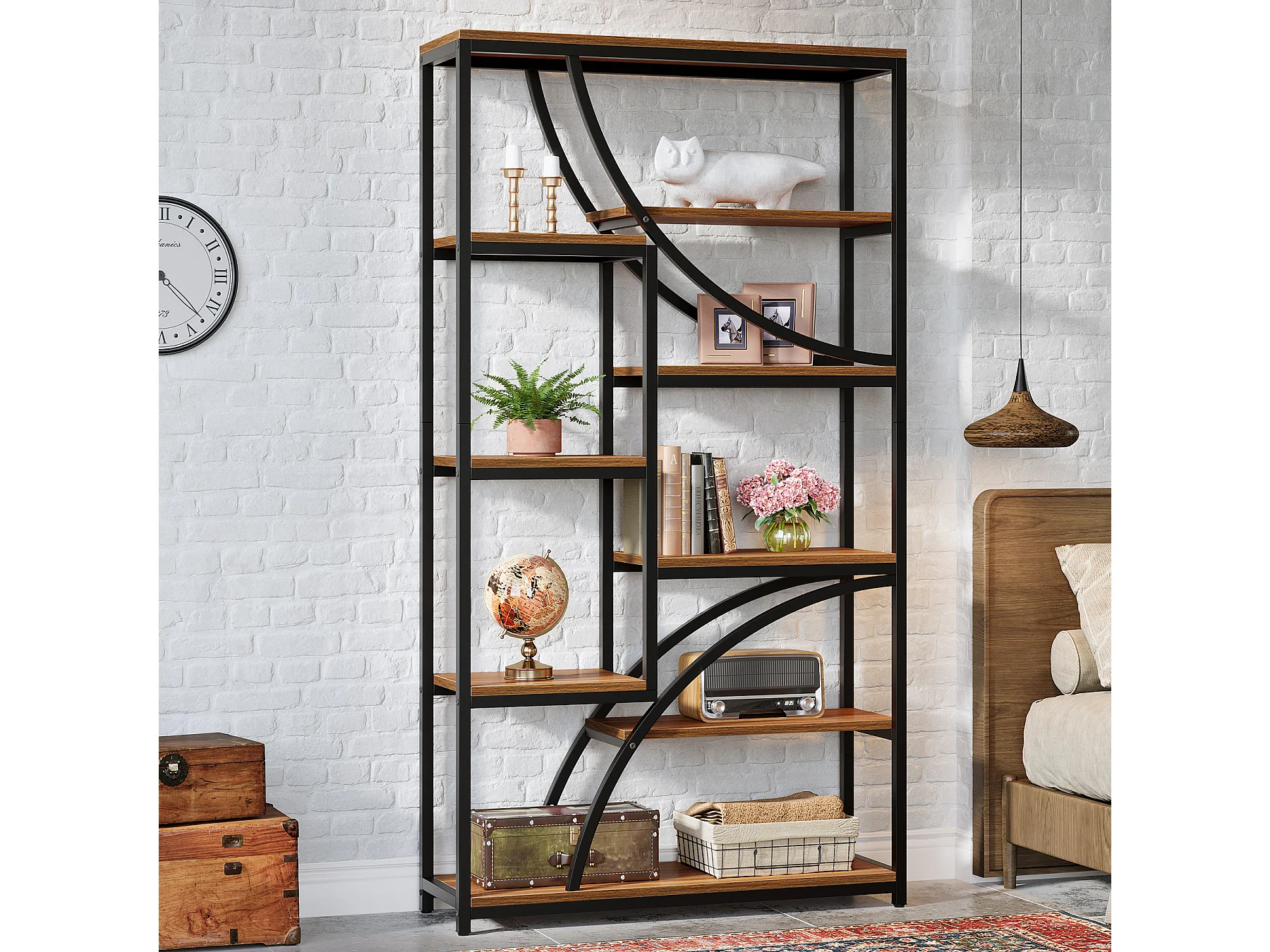 180 cm hoge boekenplank, industriële etagère met 9 niveaus, grote geometrische boekenplanken met open plank