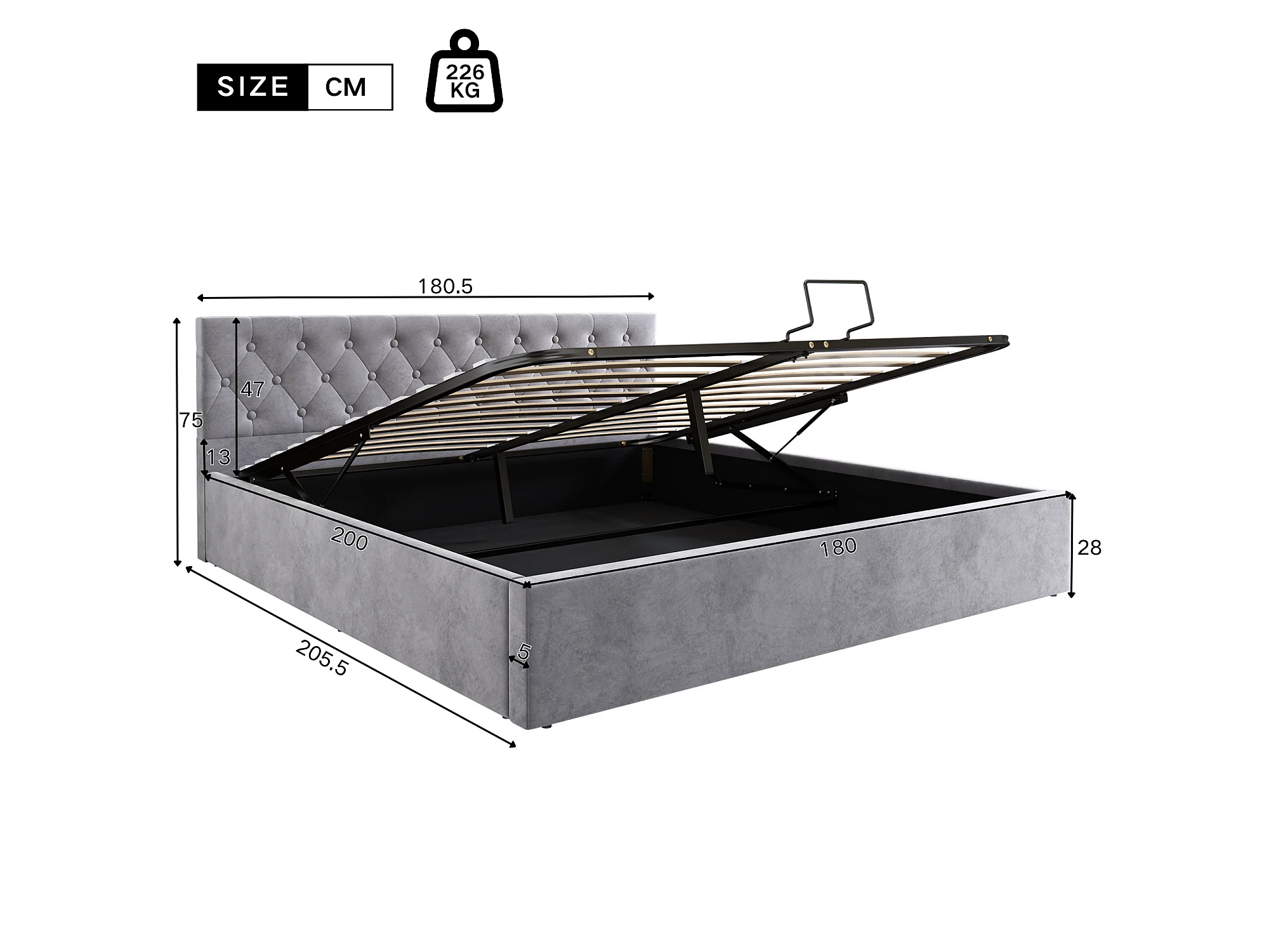 180x200cm fluwelen opbergbed met lattenbodem - Grijs