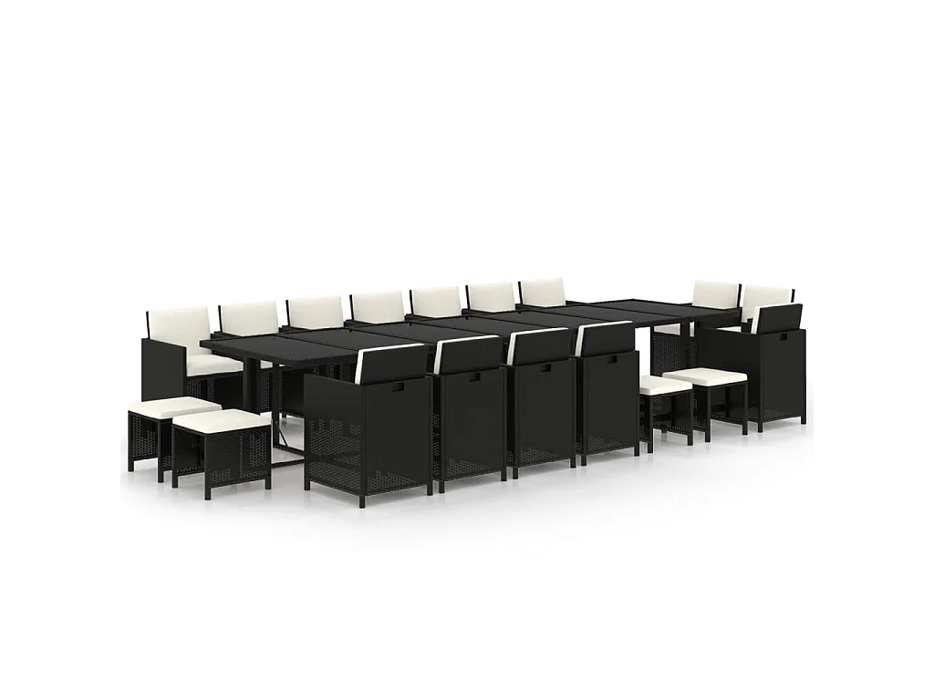 19-delige Tuinset met kussens poly rattan zwart