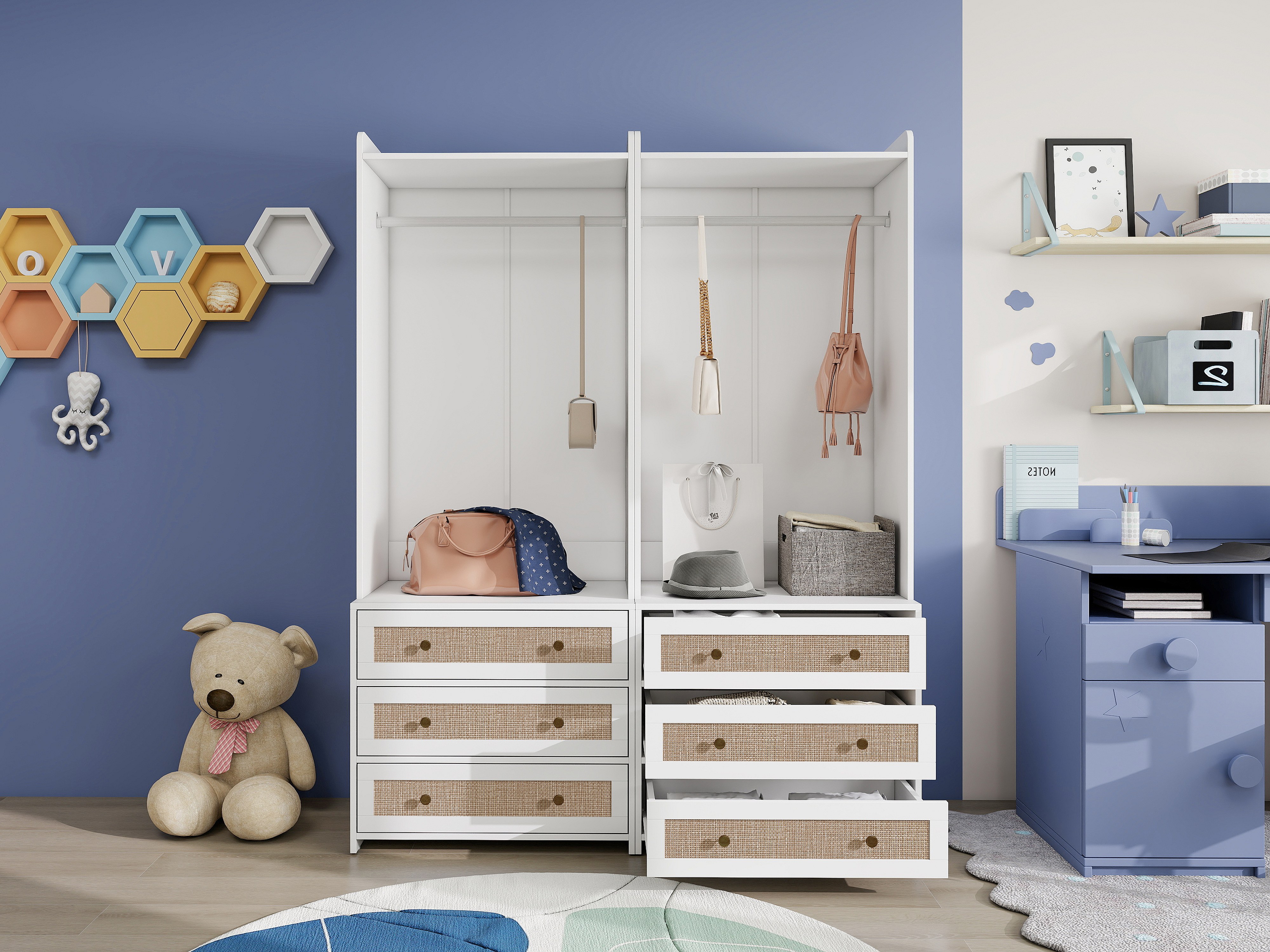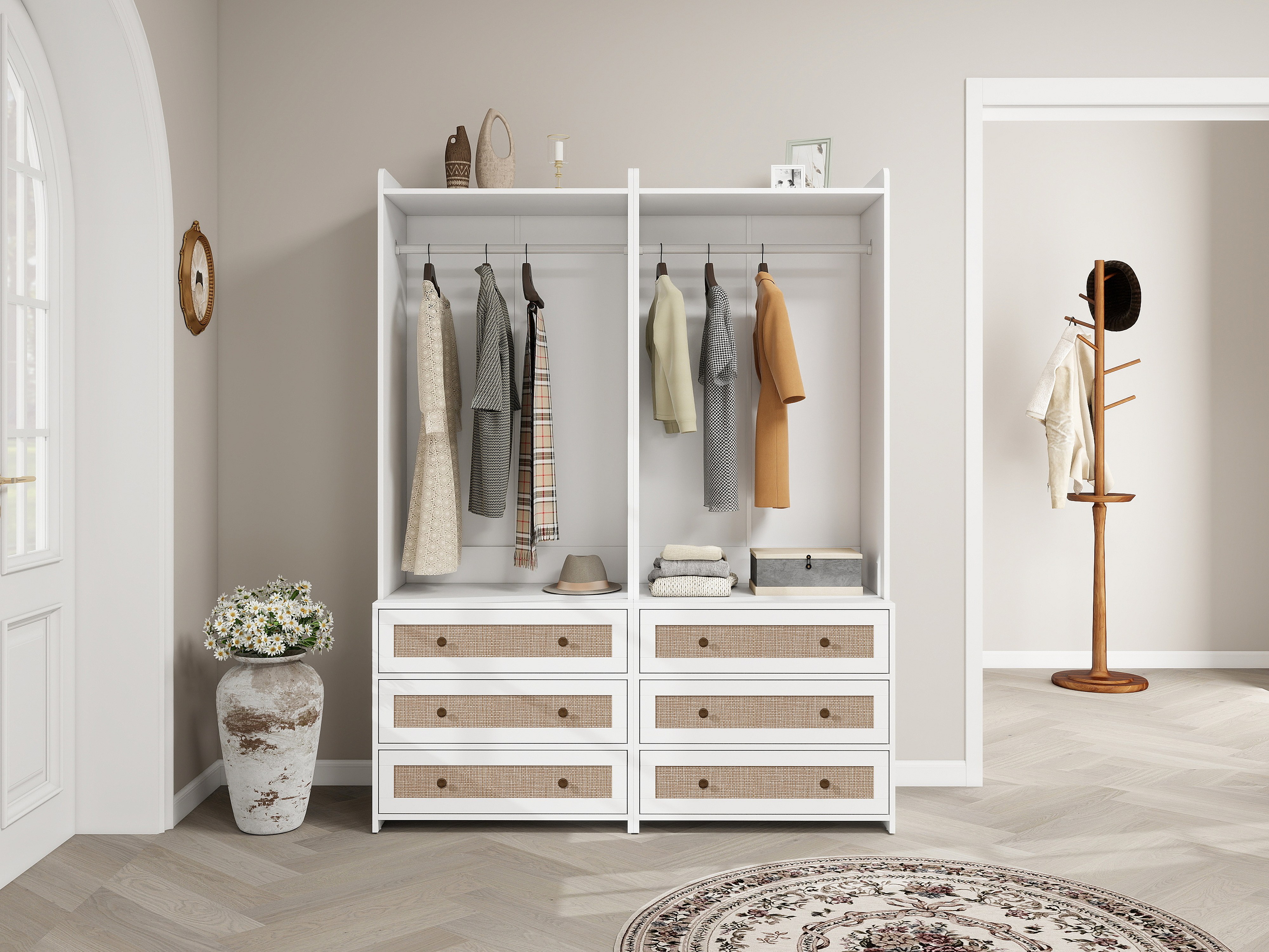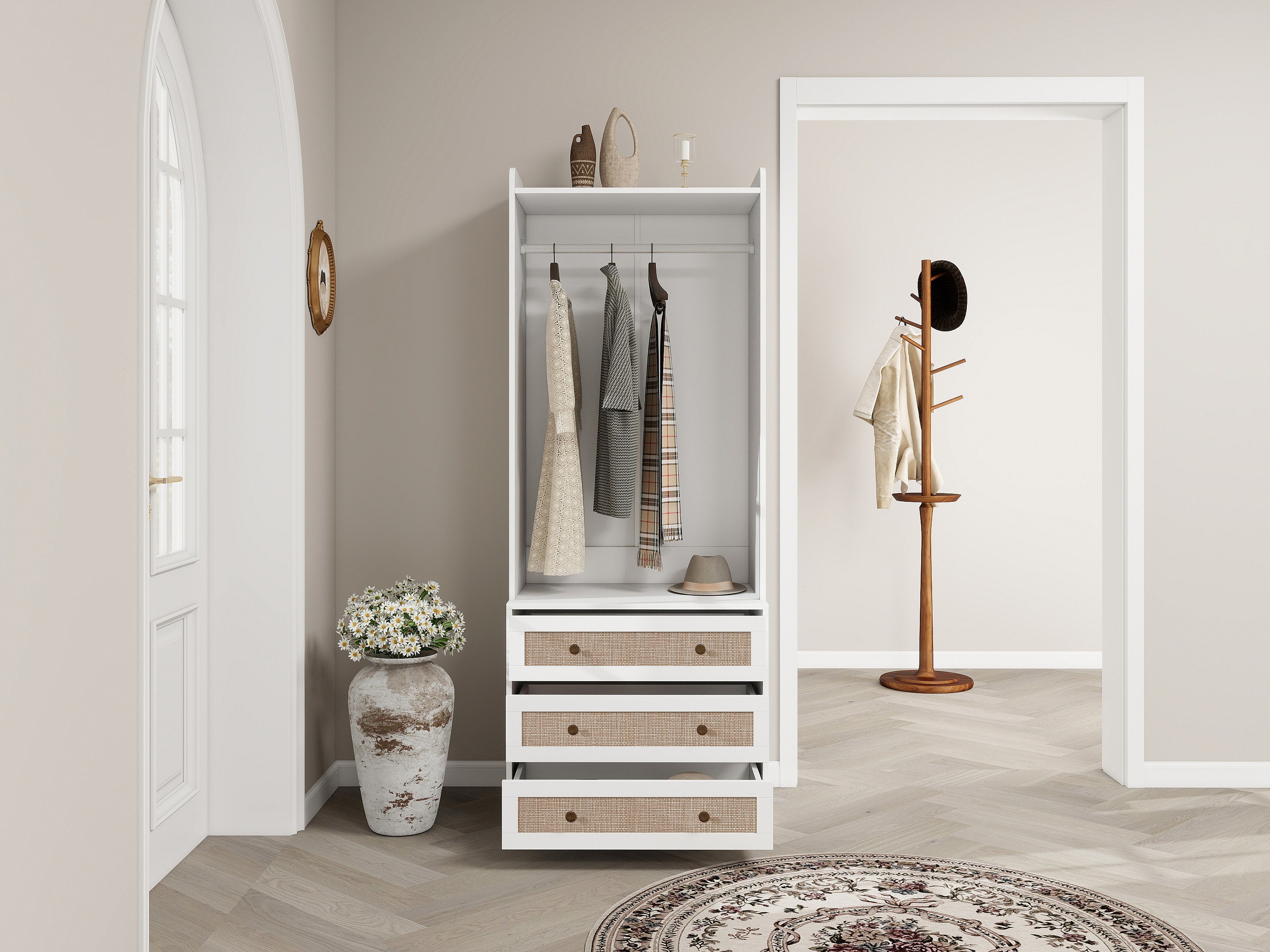 1PC Witte Boho-stijl kledingkast met 3 lades en plank - 70 x 48 x 180 cm, praktisch en multifunctioneel voor woonkamer, slaapkamer of kantoor