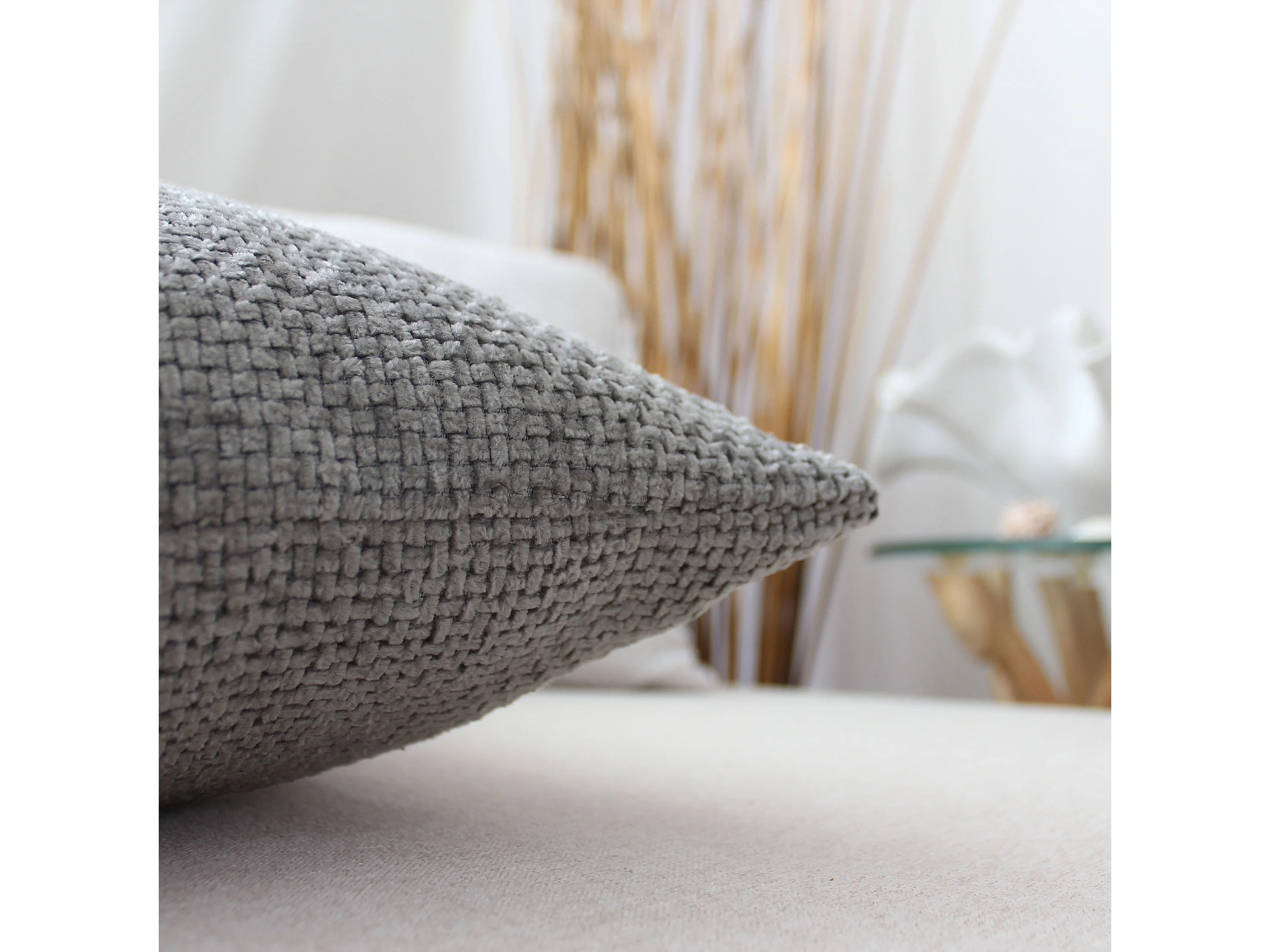 2 Chenille fluwelen kussens, uitneembaar, donkergrijs, 100% polyester, Kamala collectie