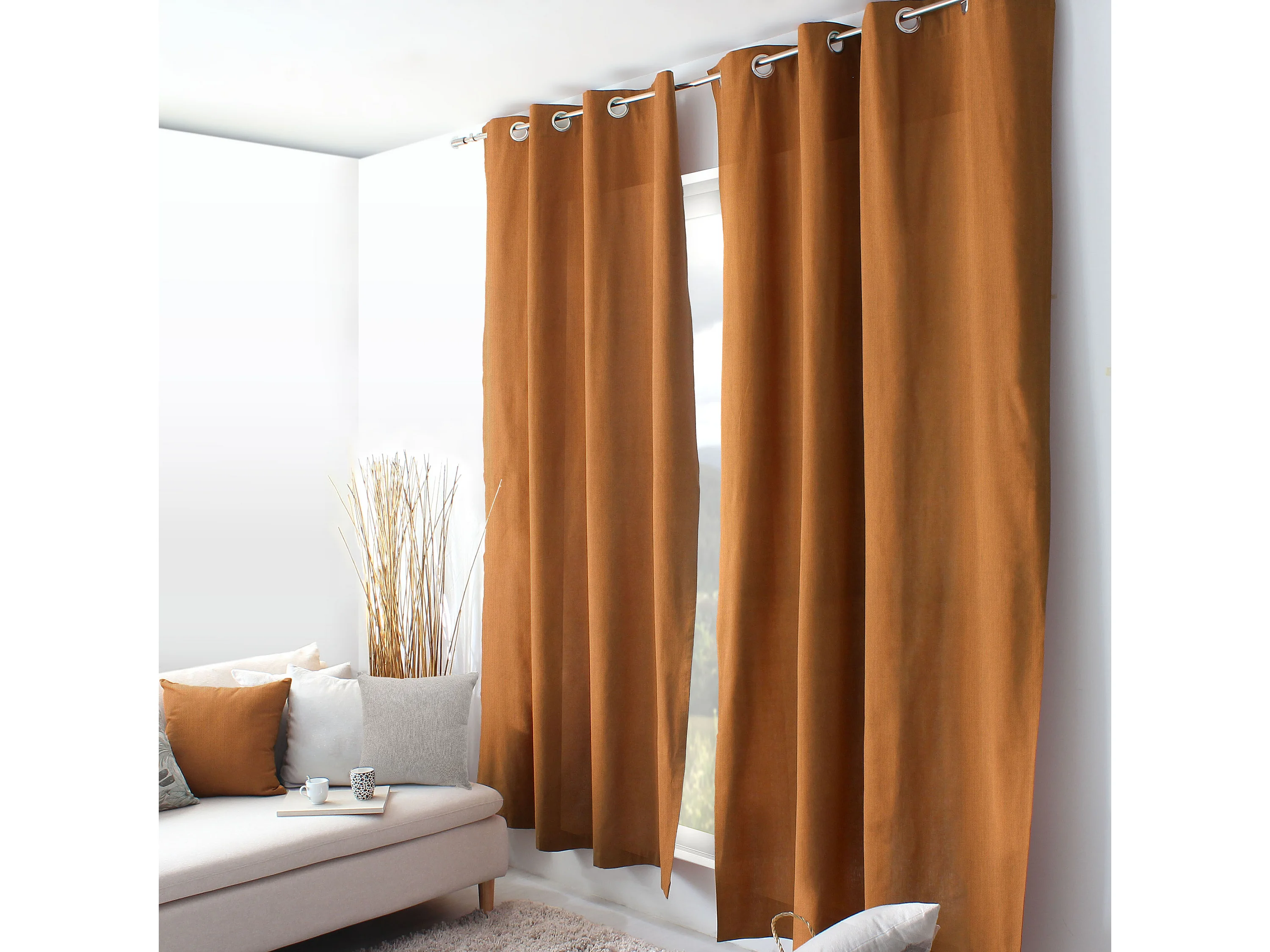 2 decoratieve gordijnen met oogjes, 140x240 cm, Kameel, Katoenkamer, CAMBRIA Collectie