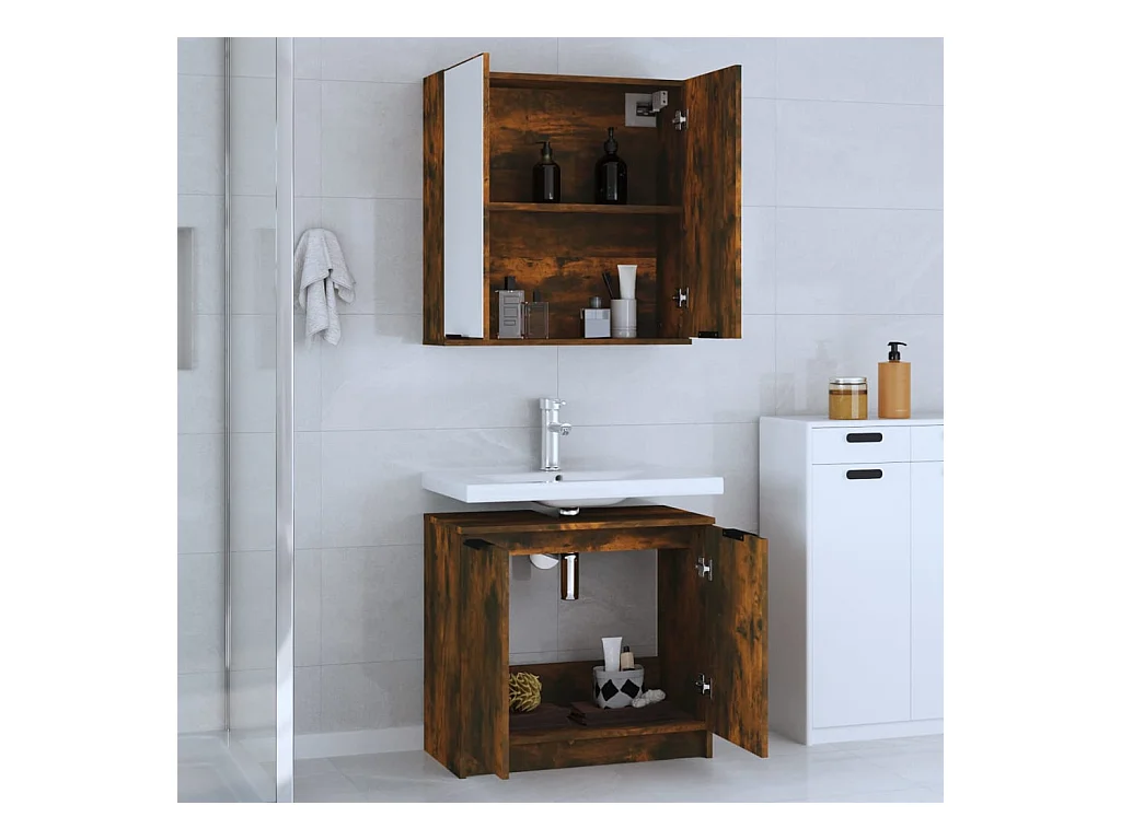 3-delige Badkamermeubelset bewerkt hout gerookt eikenkleurig BE738860