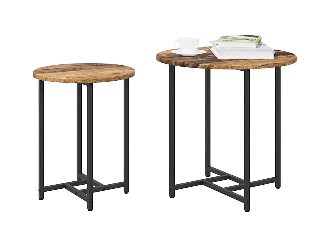 2-delige bijzettafelset, handgemaakt eiken en zwart