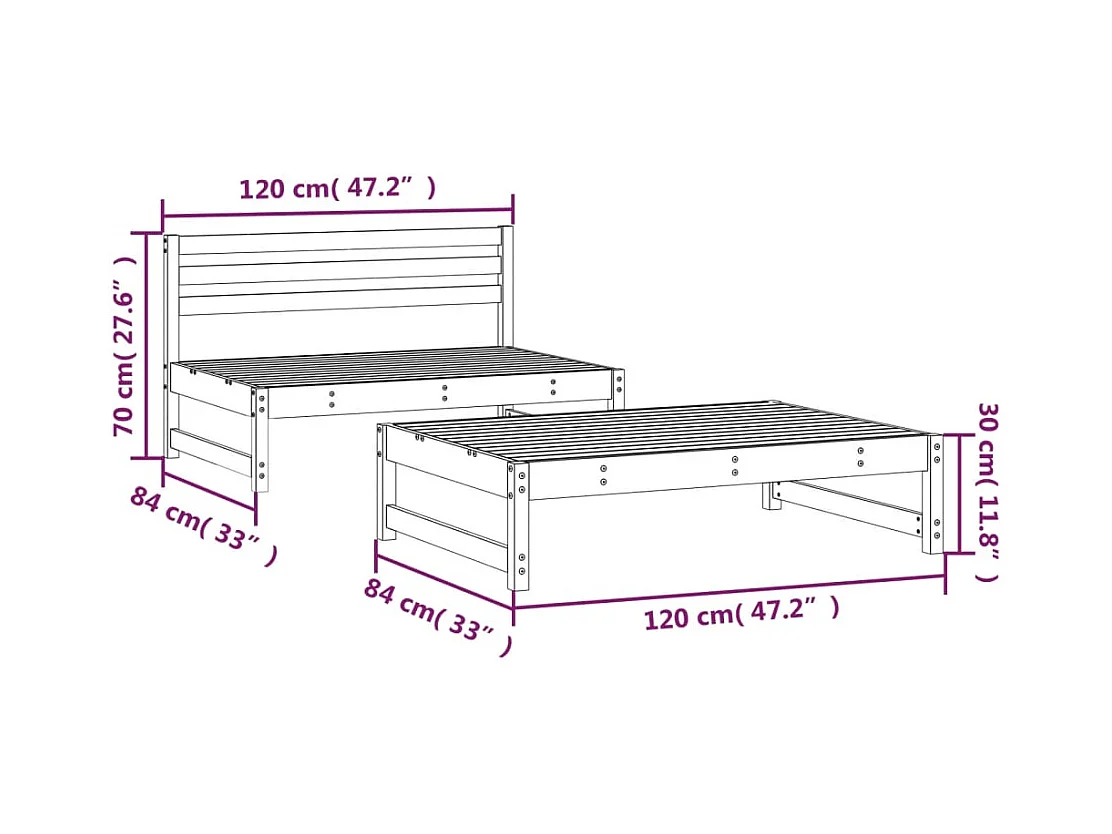 Tuinmeubelen 2 stuks zwart massief grenenhout