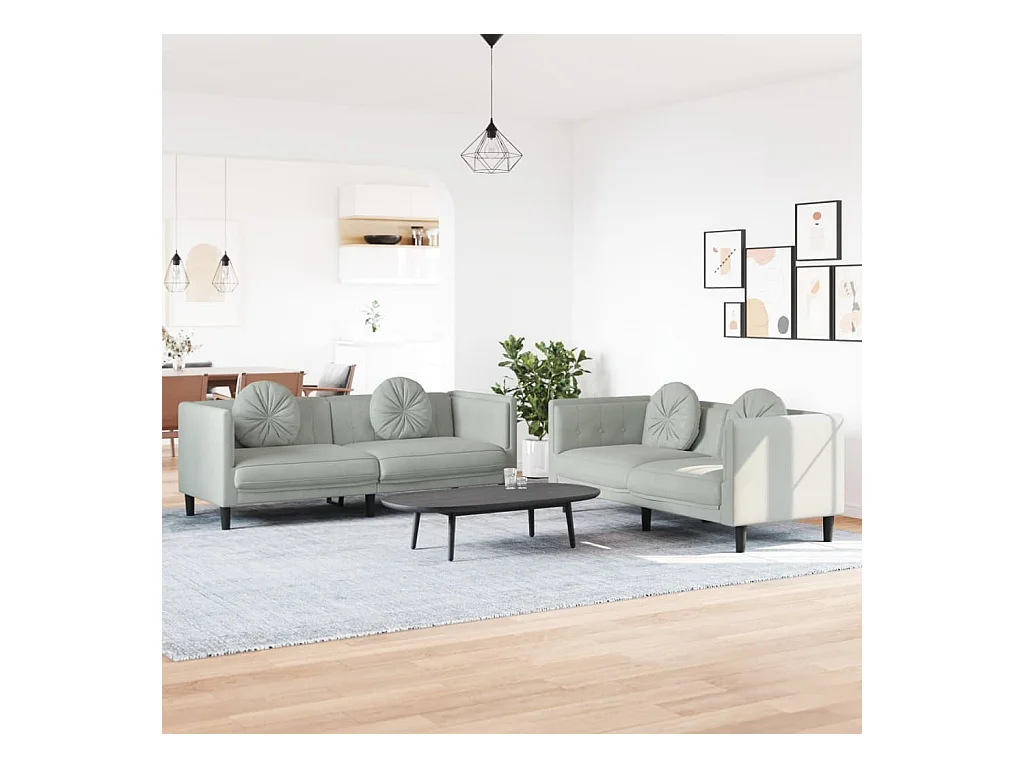 2-delige Loungeset met kussens fluweel lichtgrijs