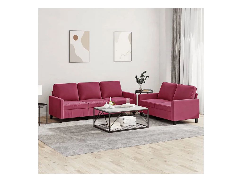 2-delige Loungeset fluweel wijnrood