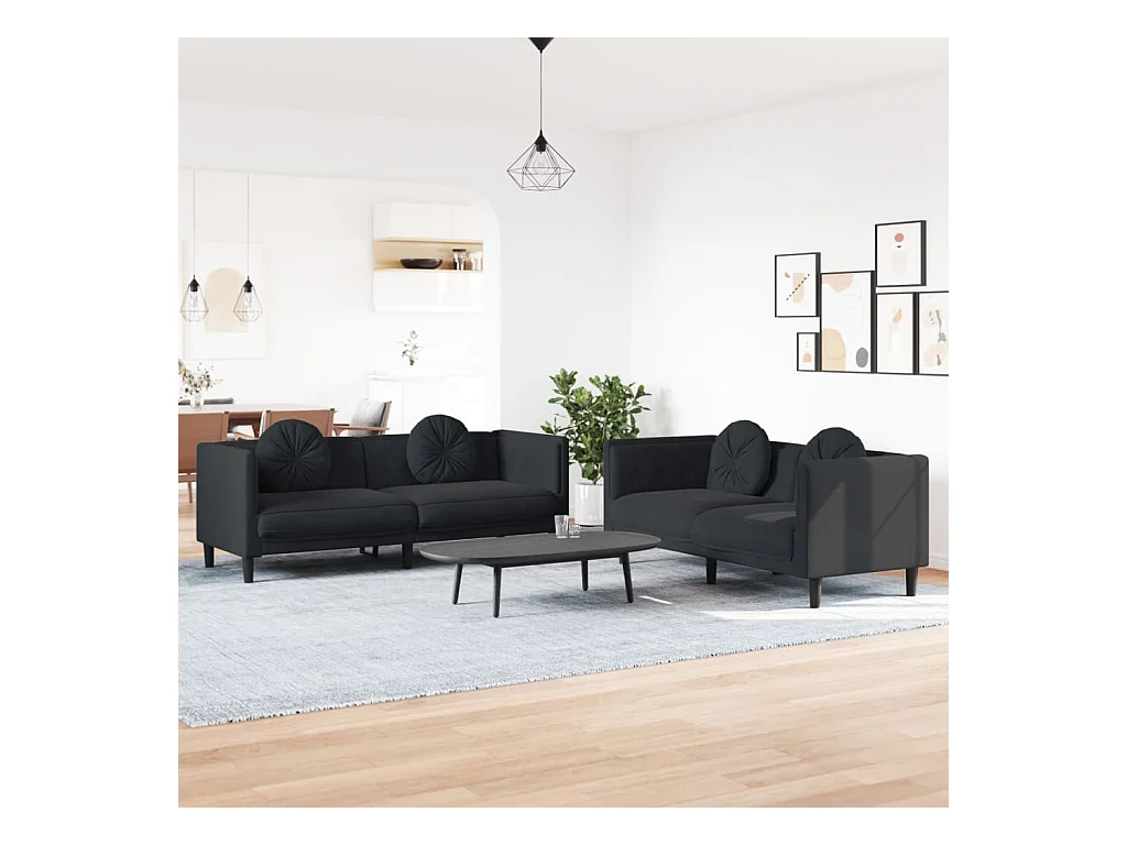 2-delige Loungeset met kussens en bolsters fluweel zwart