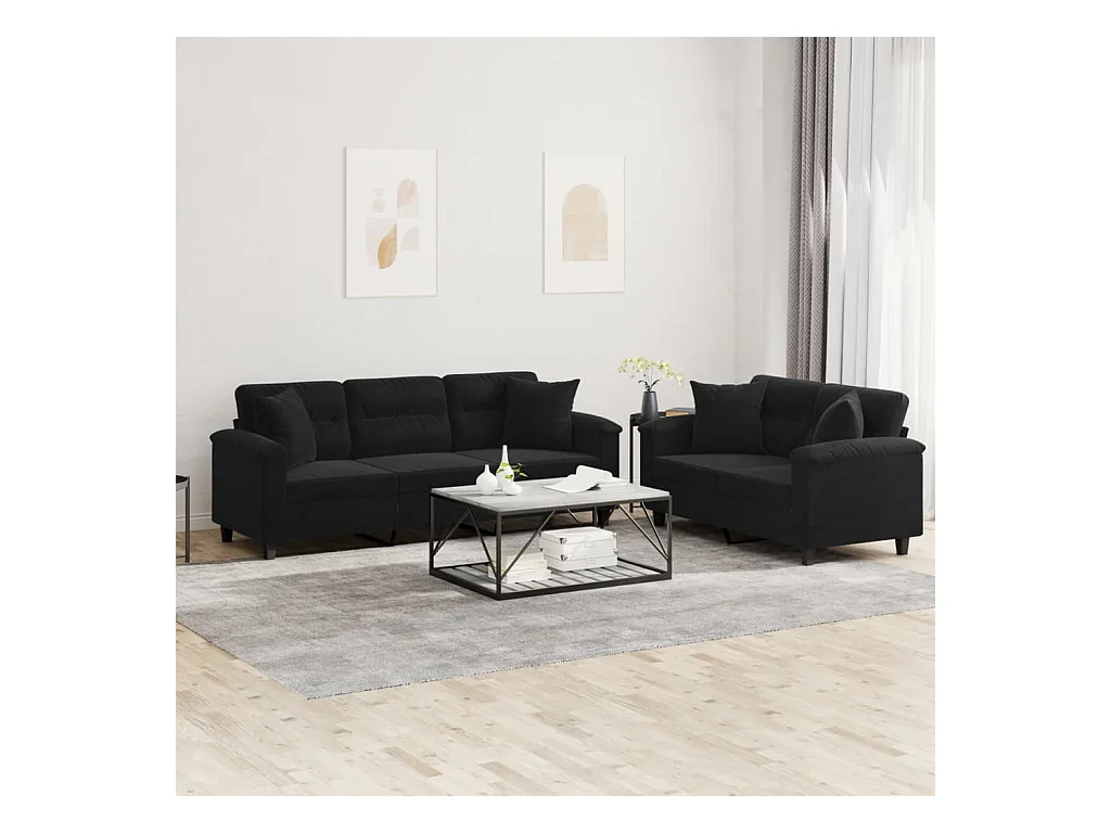 2-delige Loungeset met kussens microvezelstof zwart