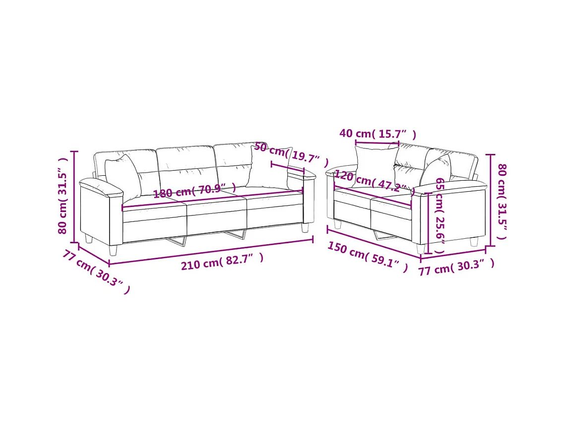 Set: 2- en 3-zitsbank - Stof