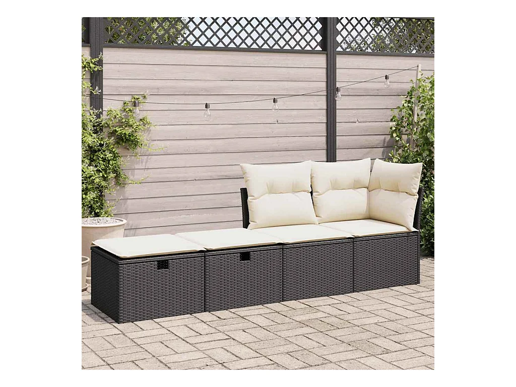 2-delige Loungeset met kussens poly rattan acacia zwart