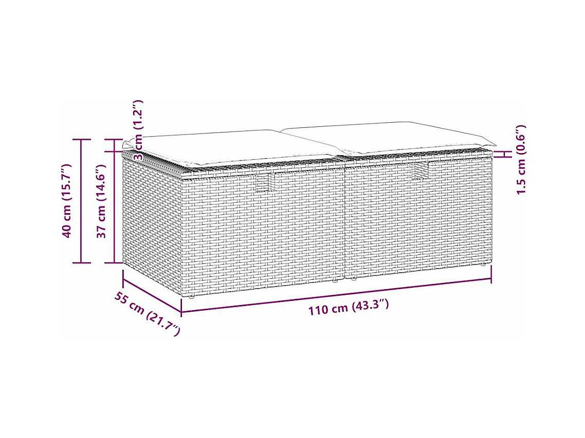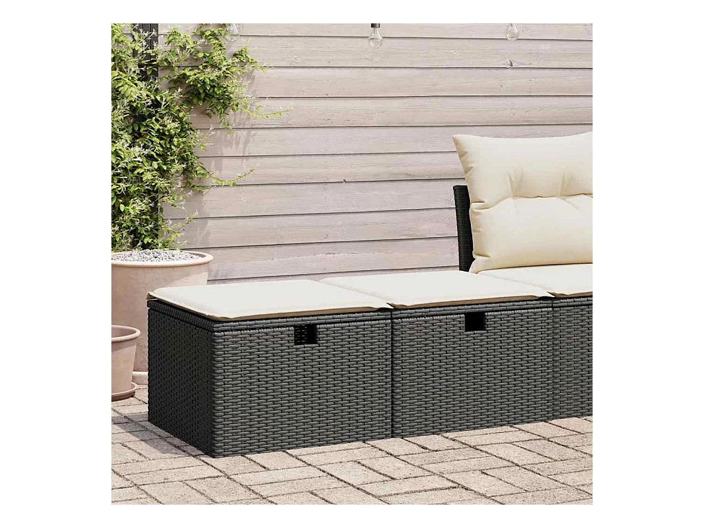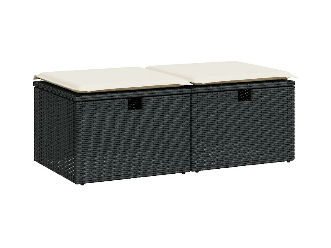 2-delige Loungeset met kussens poly rattan acacia zwart