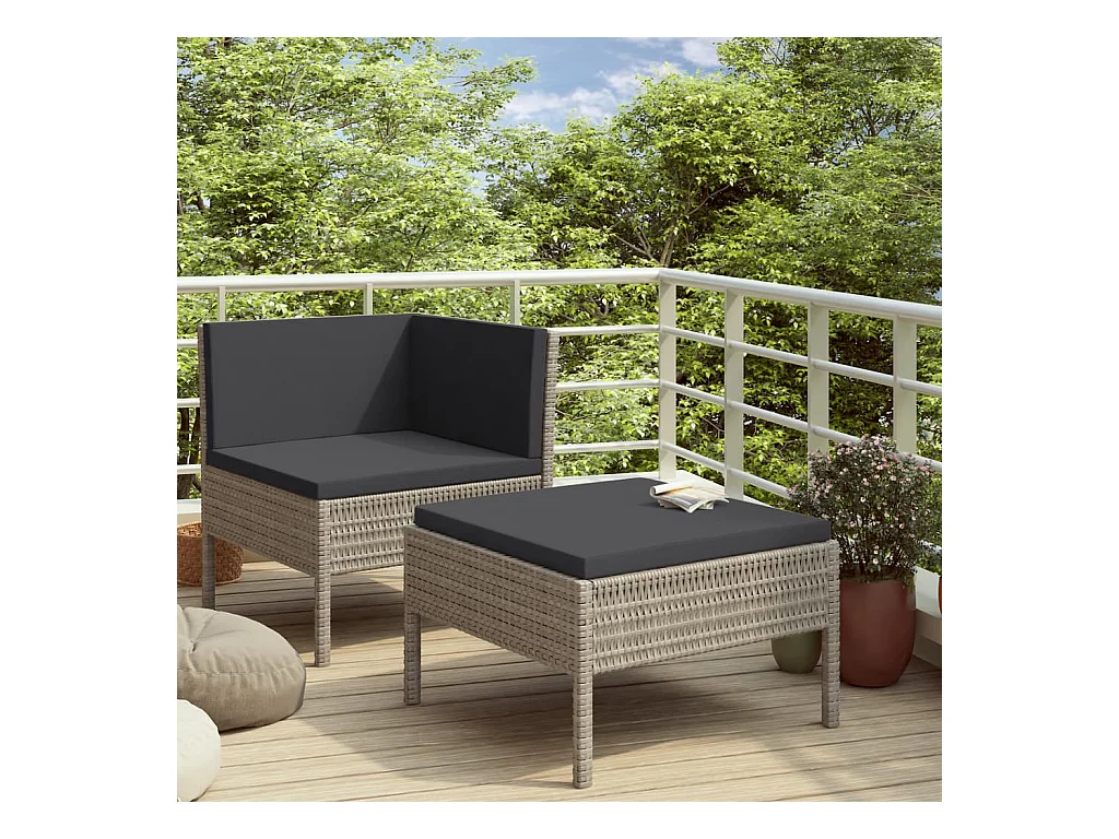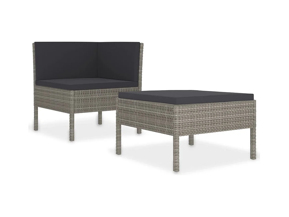 2-delige Loungeset met kussen PP rattan antracietkleurig