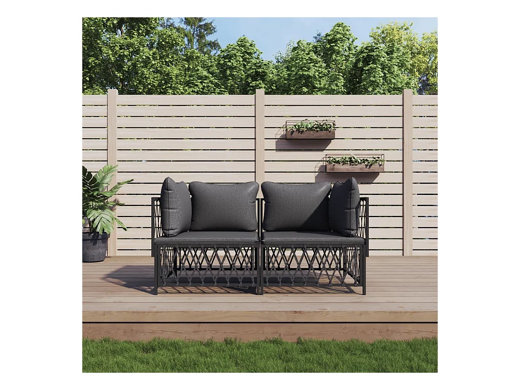 2-delige Loungeset met kussens staal antracietkleurig NL20263