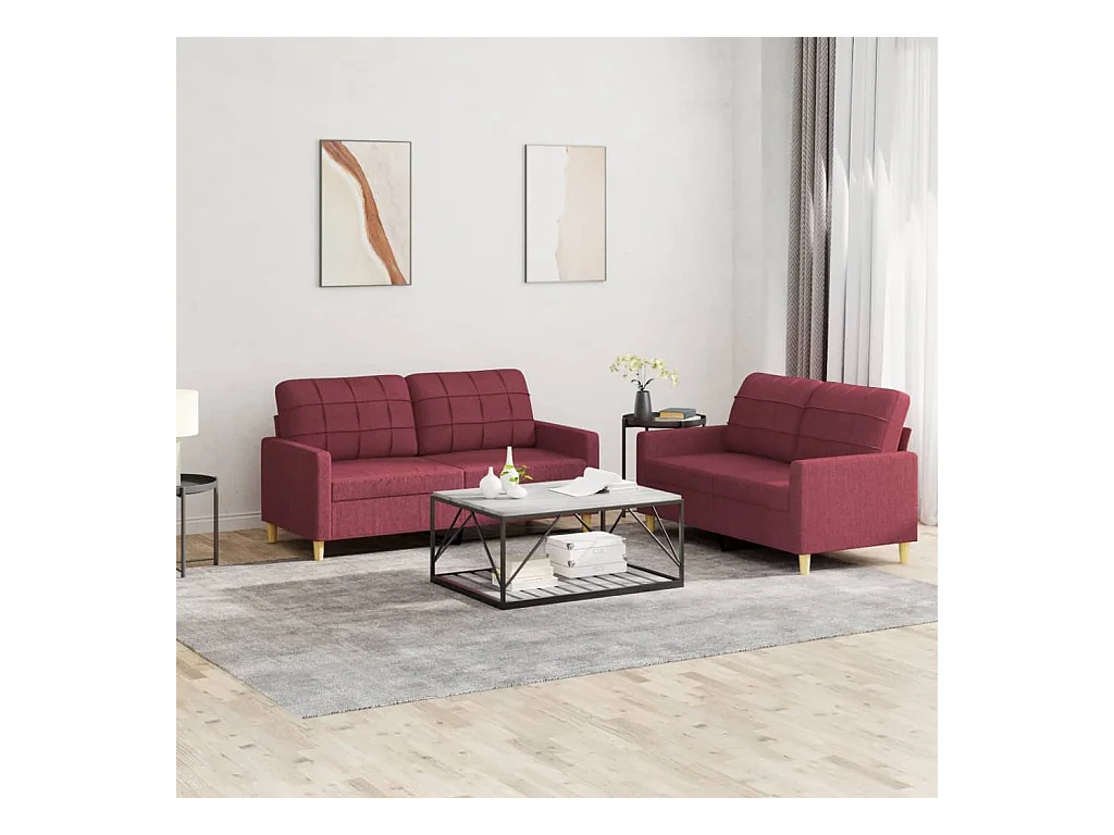 2-delige Loungeset met kussens stof wijnrood
