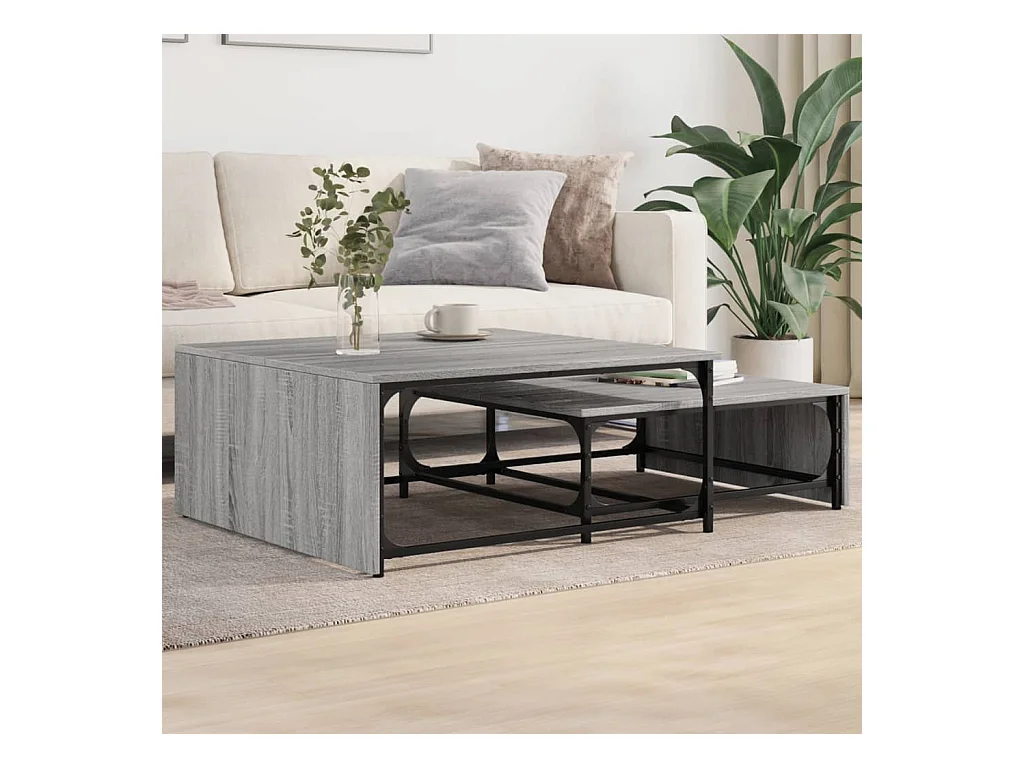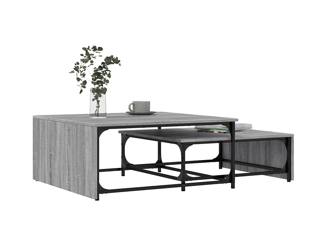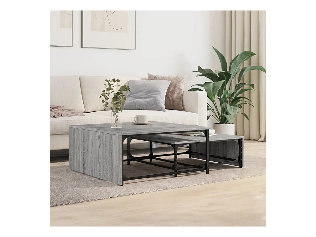 2-delige Salontafelset bewerkt hout en metaal grijs sonoma