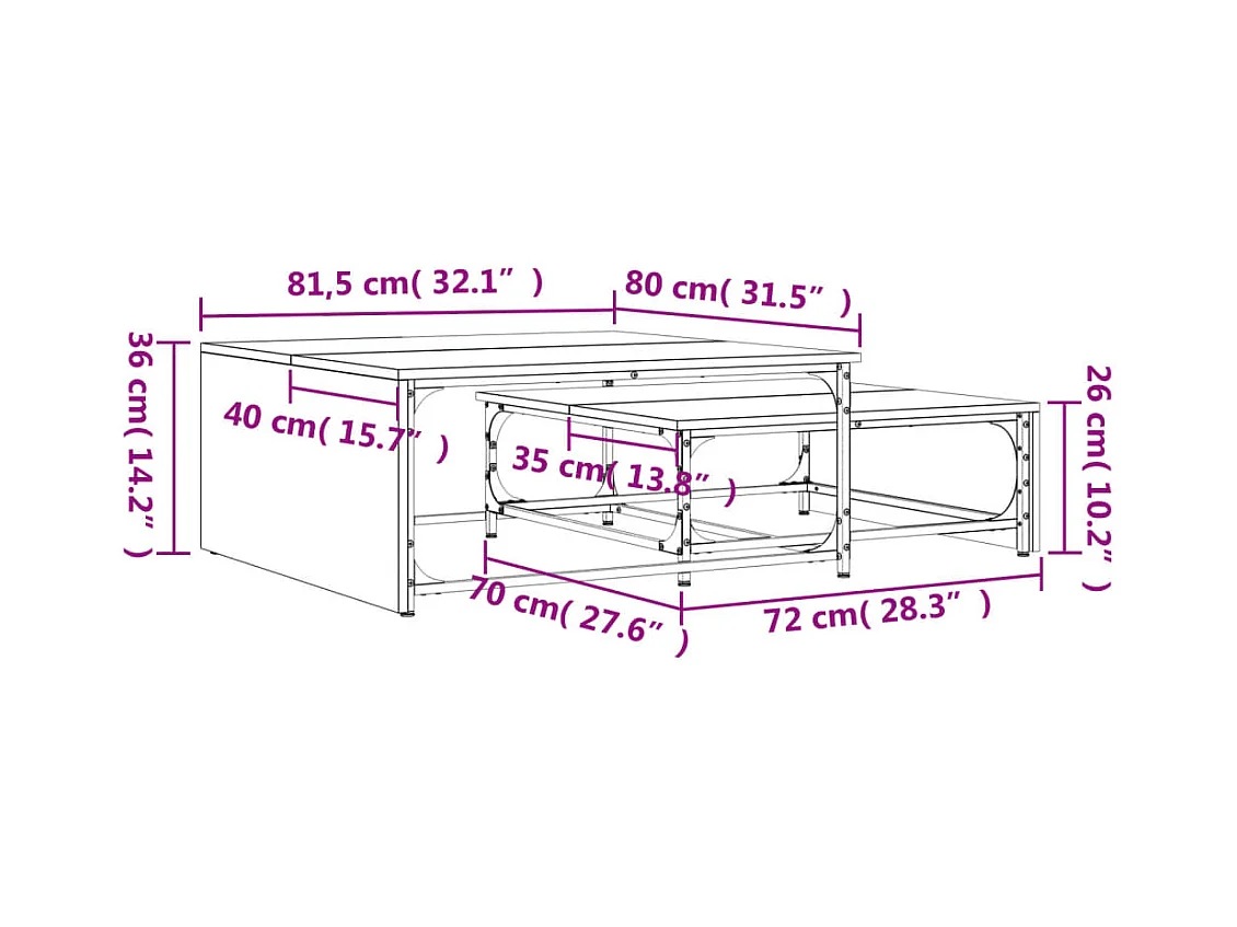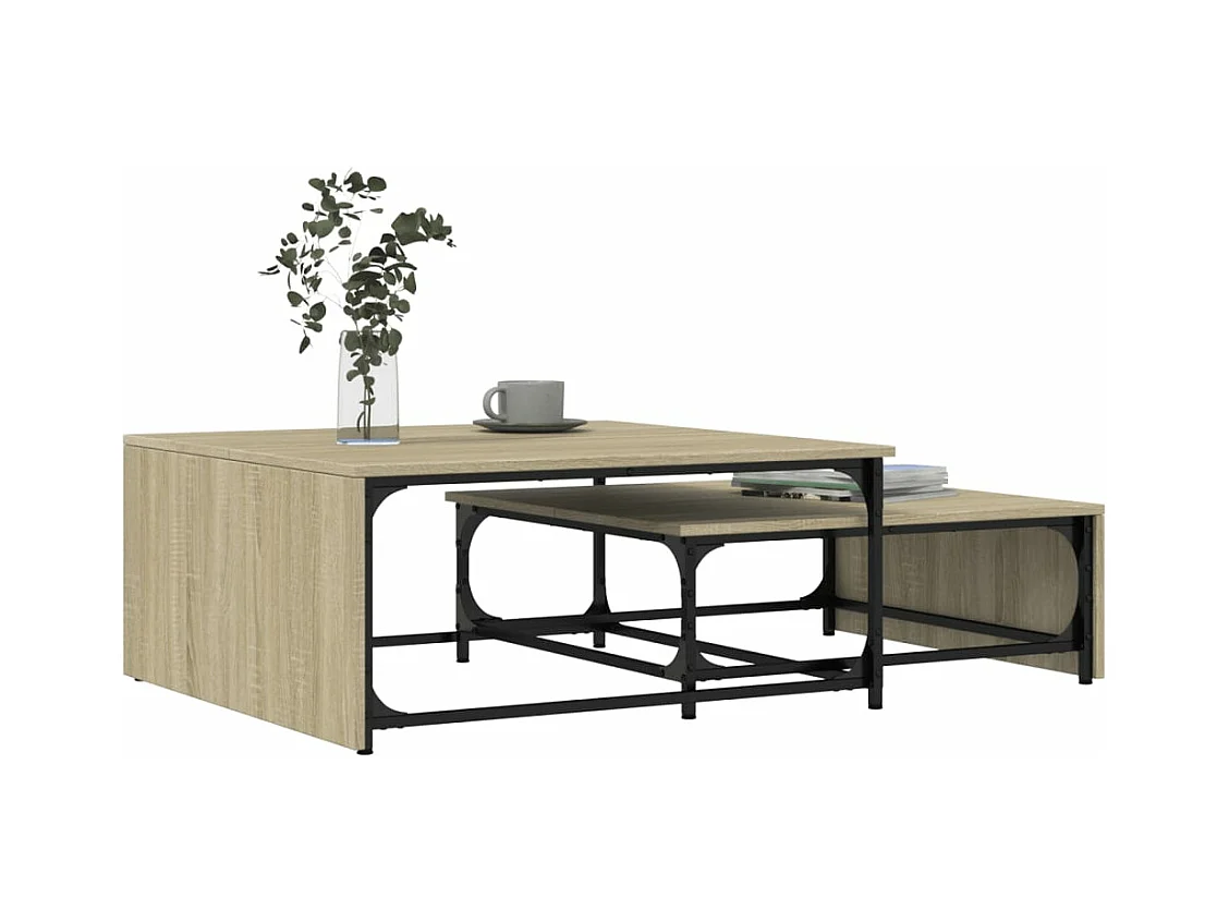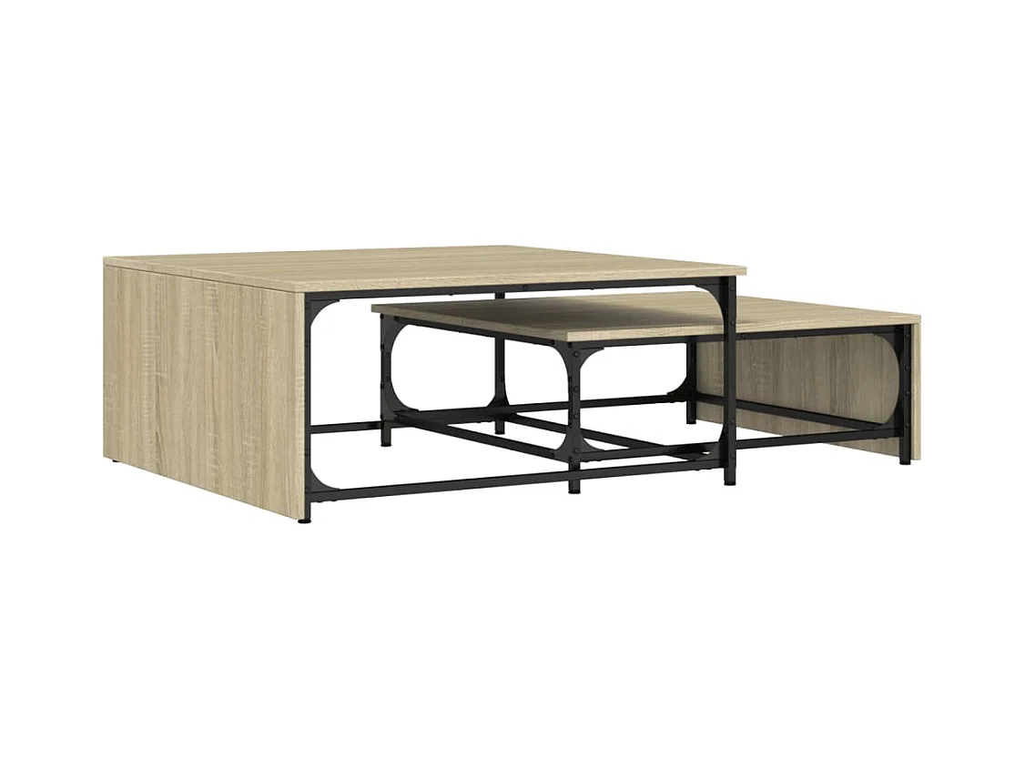 2-delige Salontafelset bewerkt hout en metaal sonoma eikenkleur