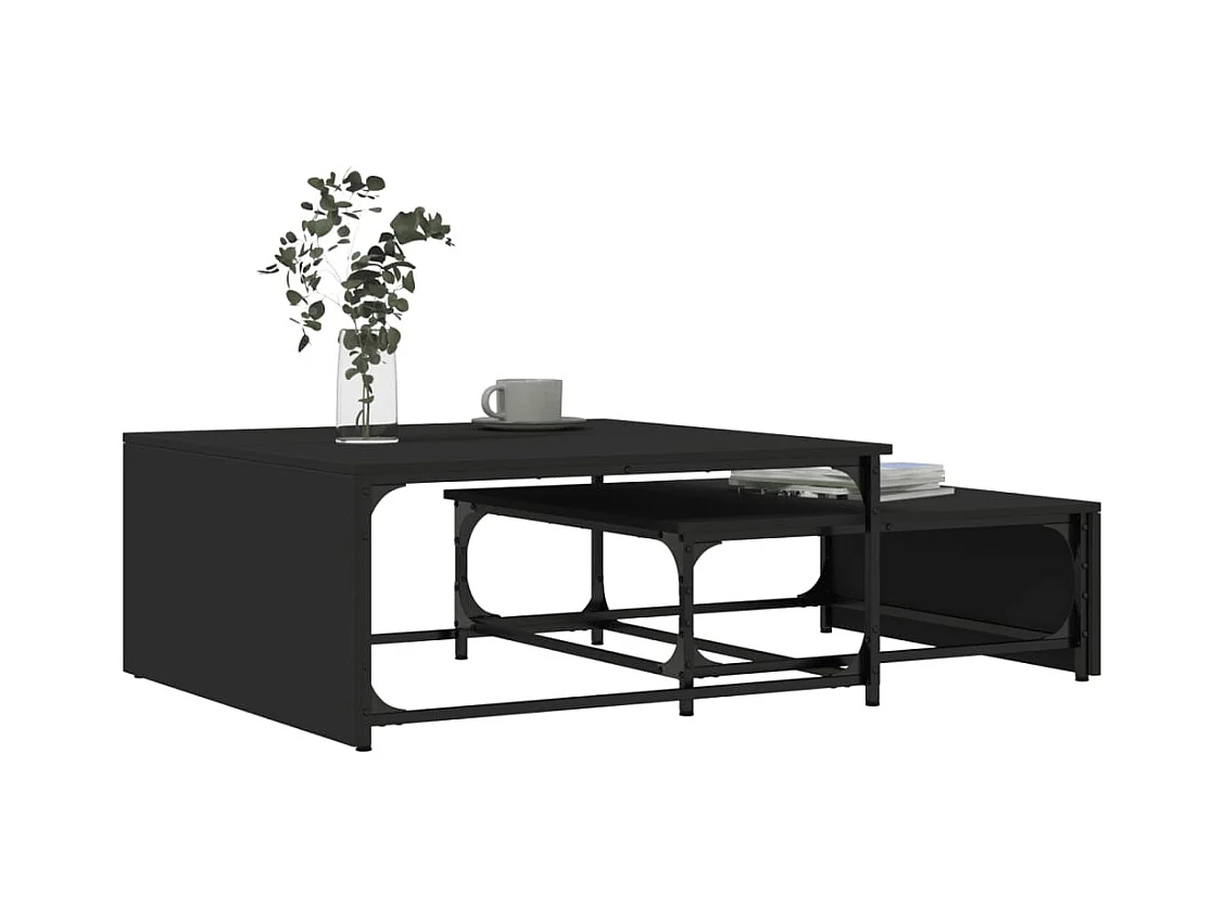 2-delige Salontafelset bewerkt hout en metaal zwart BE836792