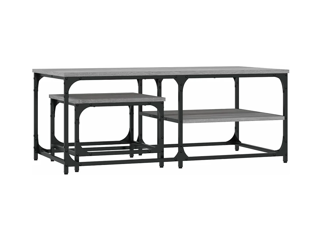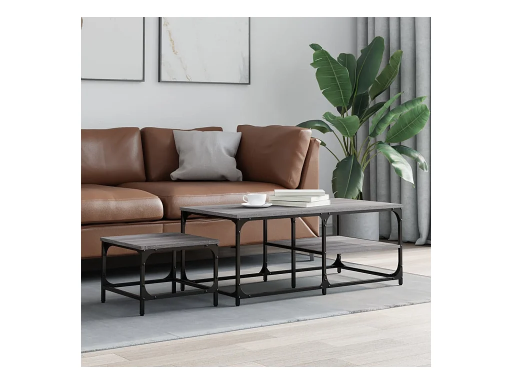 2-delige Salontafelset bewerkt hout en metaal grijs sonoma