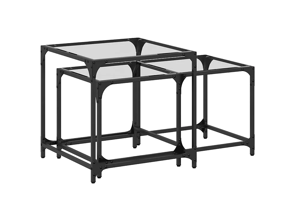 2-delige Tafeltjesset met transparant glazen blad staal