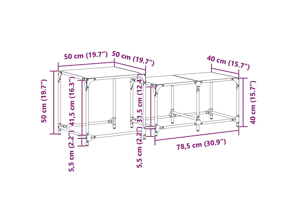 Set inschuifbare tafels vierkant