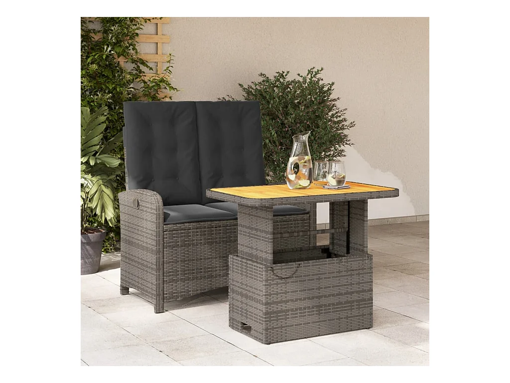 2-delige Tuinset met kussens poly rattan grijs BE125285