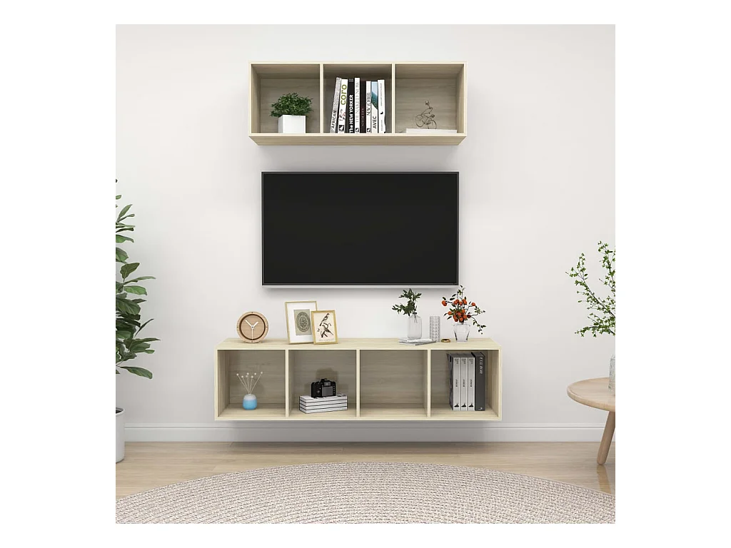 2-delige wandgemonteerde tv-kasten Sonoma Eiken Technisch hout