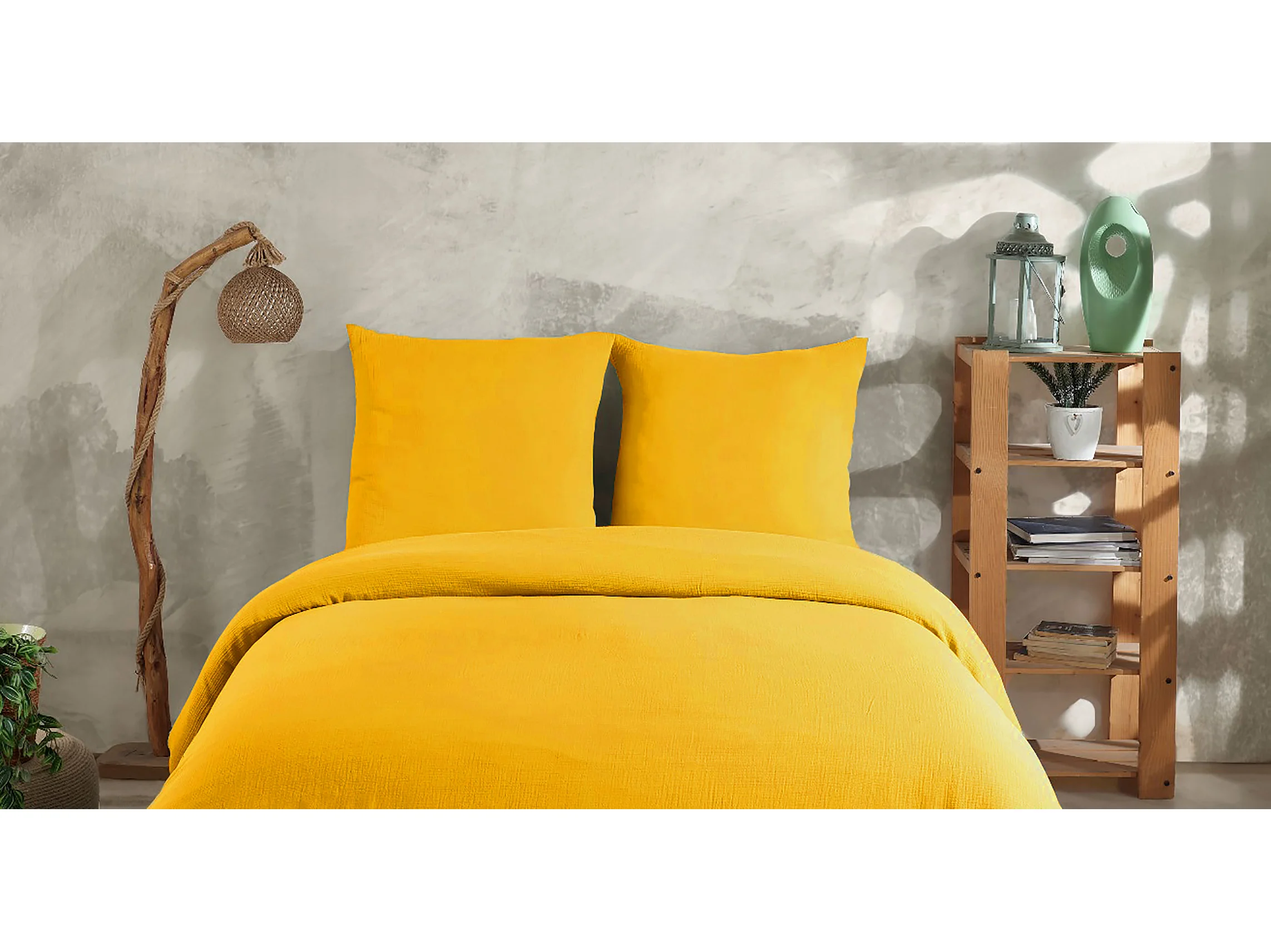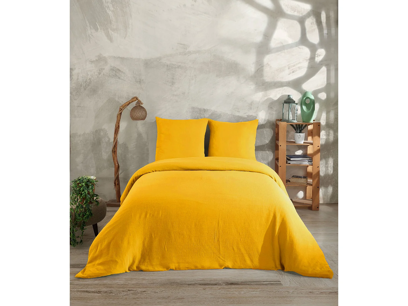 2 persoons beddengoed 200x200 cm+2 kussenslopen 65x65 cm in katoen gaas mousseline