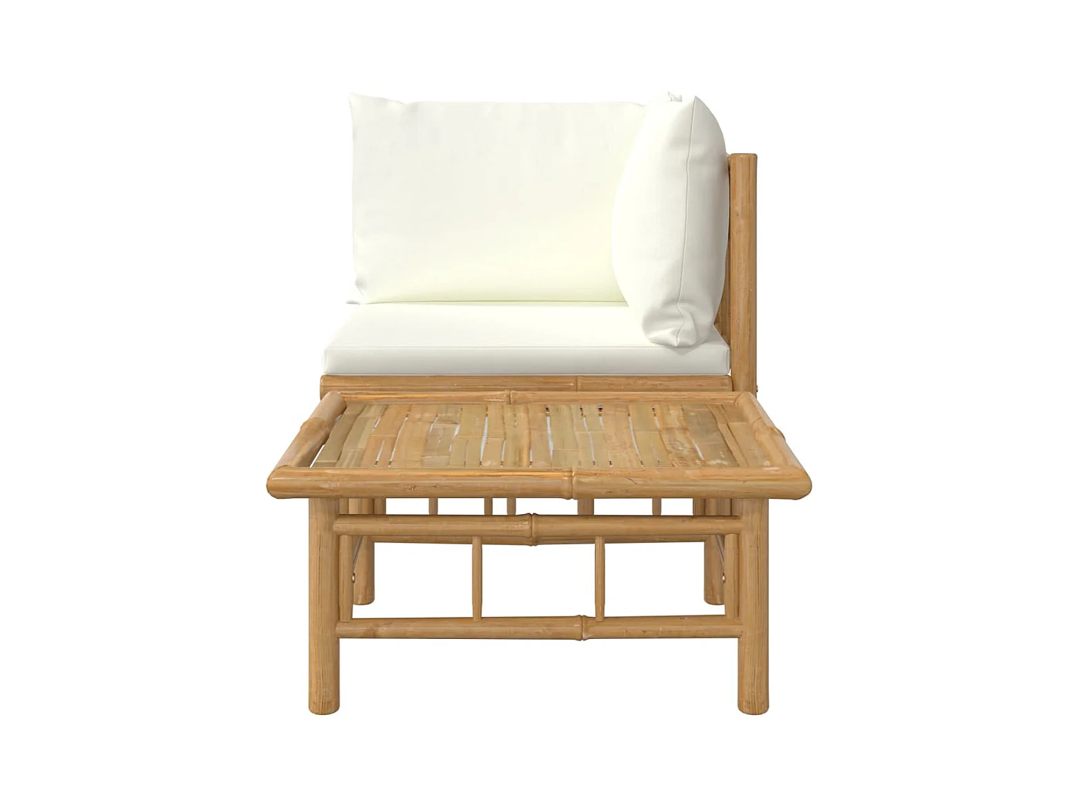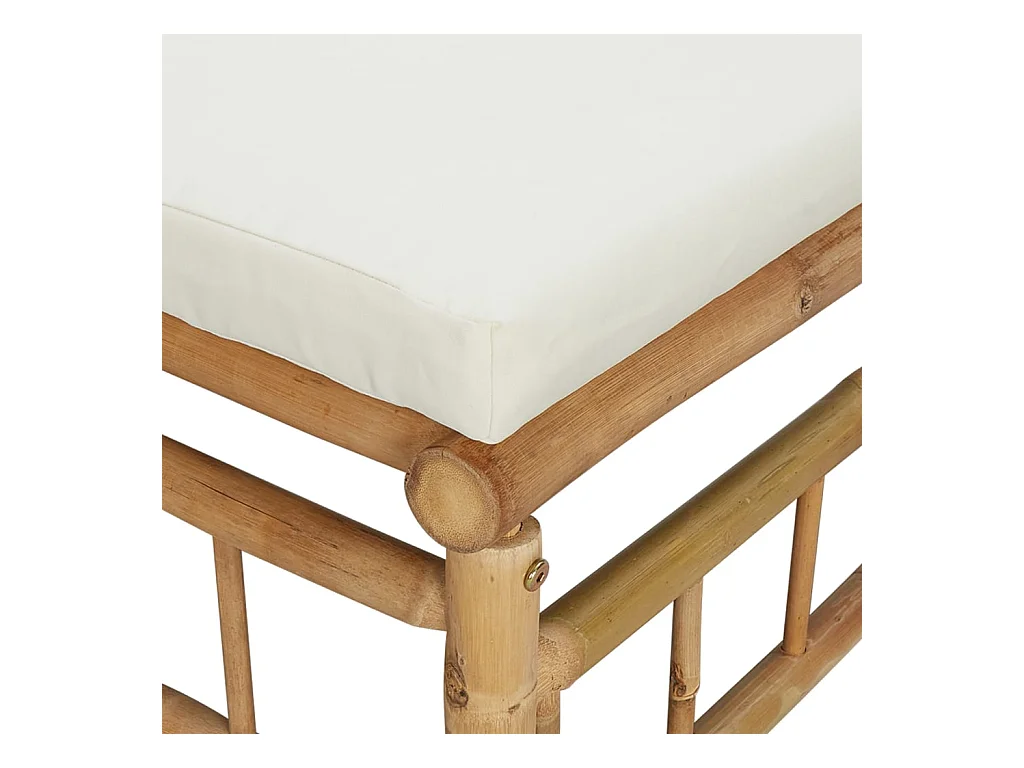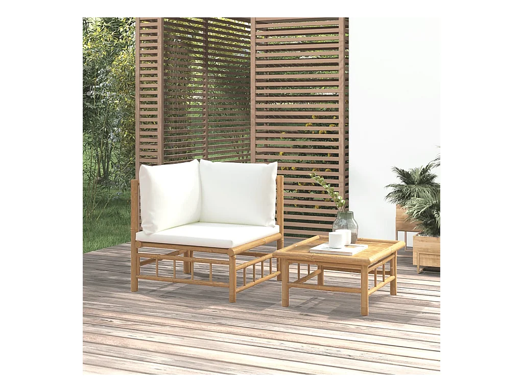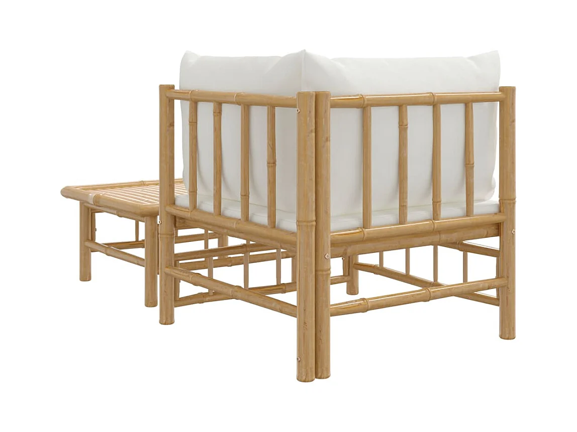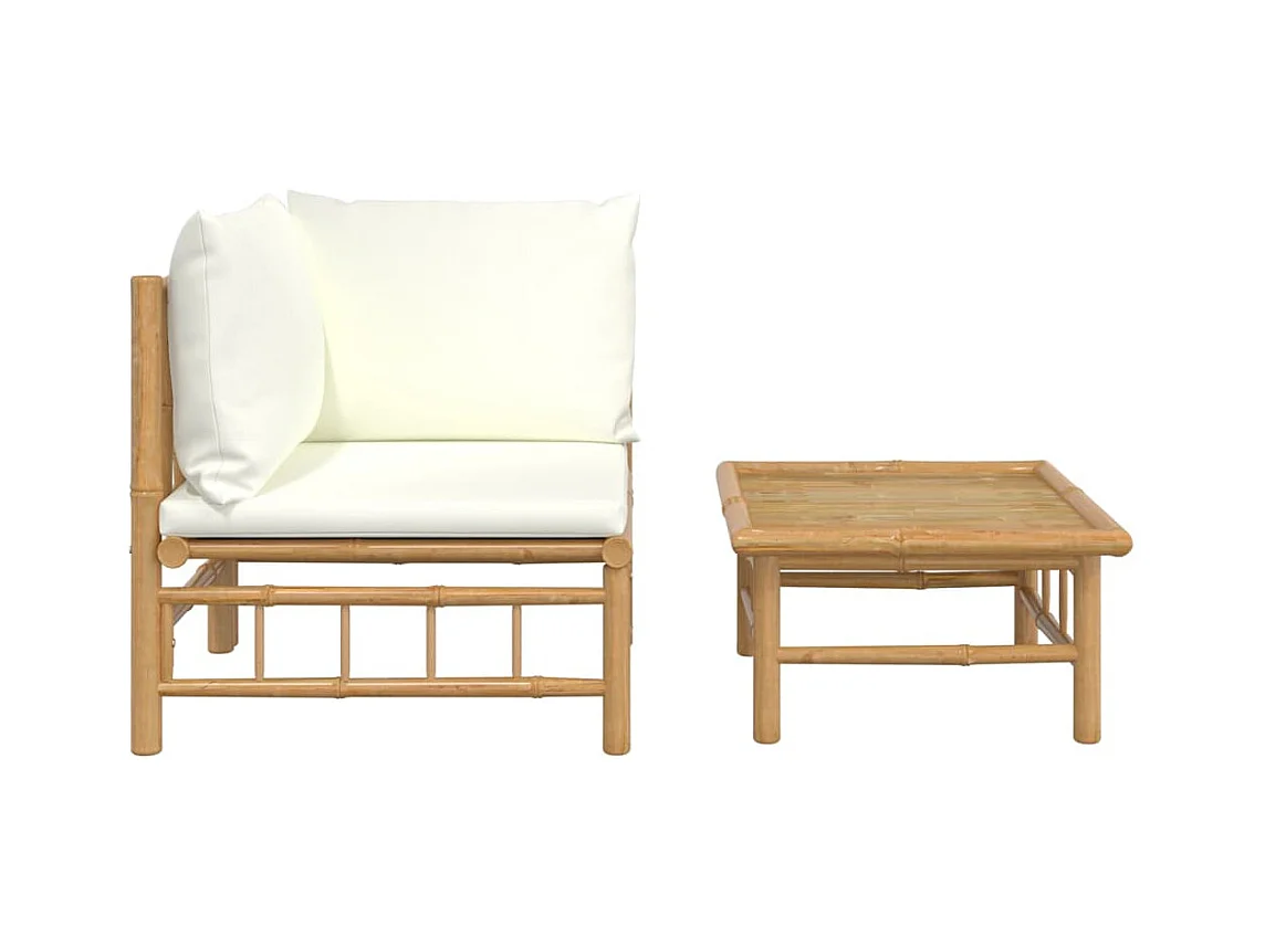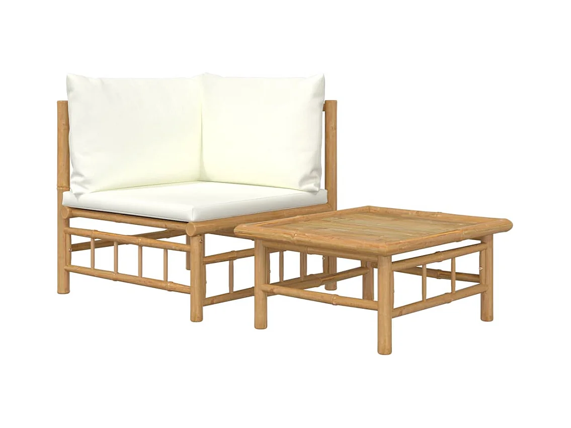2 stuks tuinmeubelen met crèmewitte bamboekussens