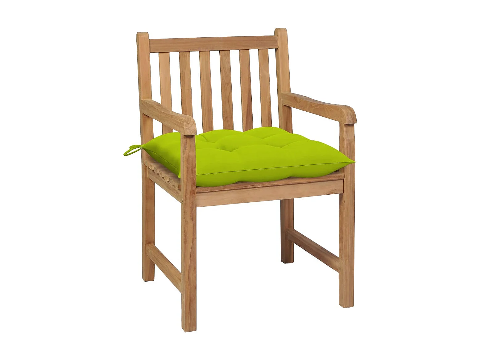 2 stuks tuinstoelen met felgroene kussens. Massief teakhout