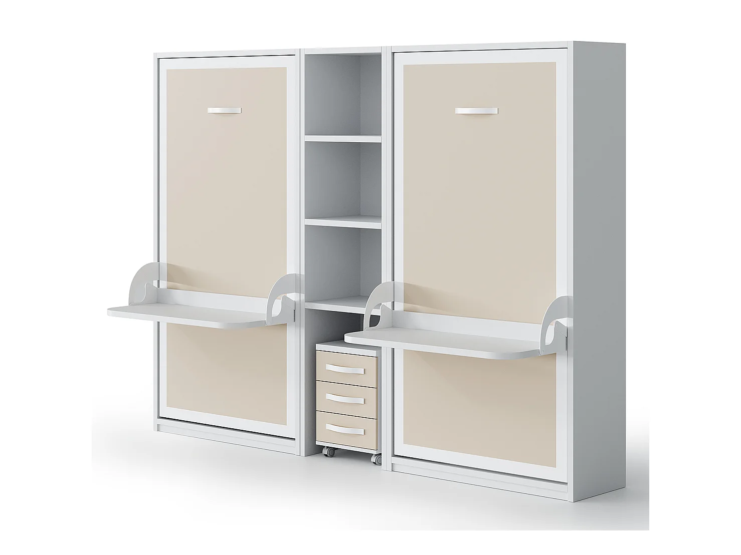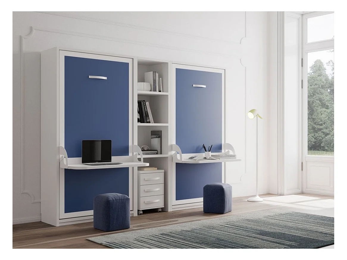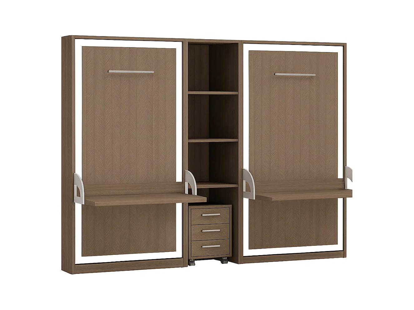 2 uitschuifbare bedden 140x190 met bureau en centrale Studante-plank-Facade Bruin eiken