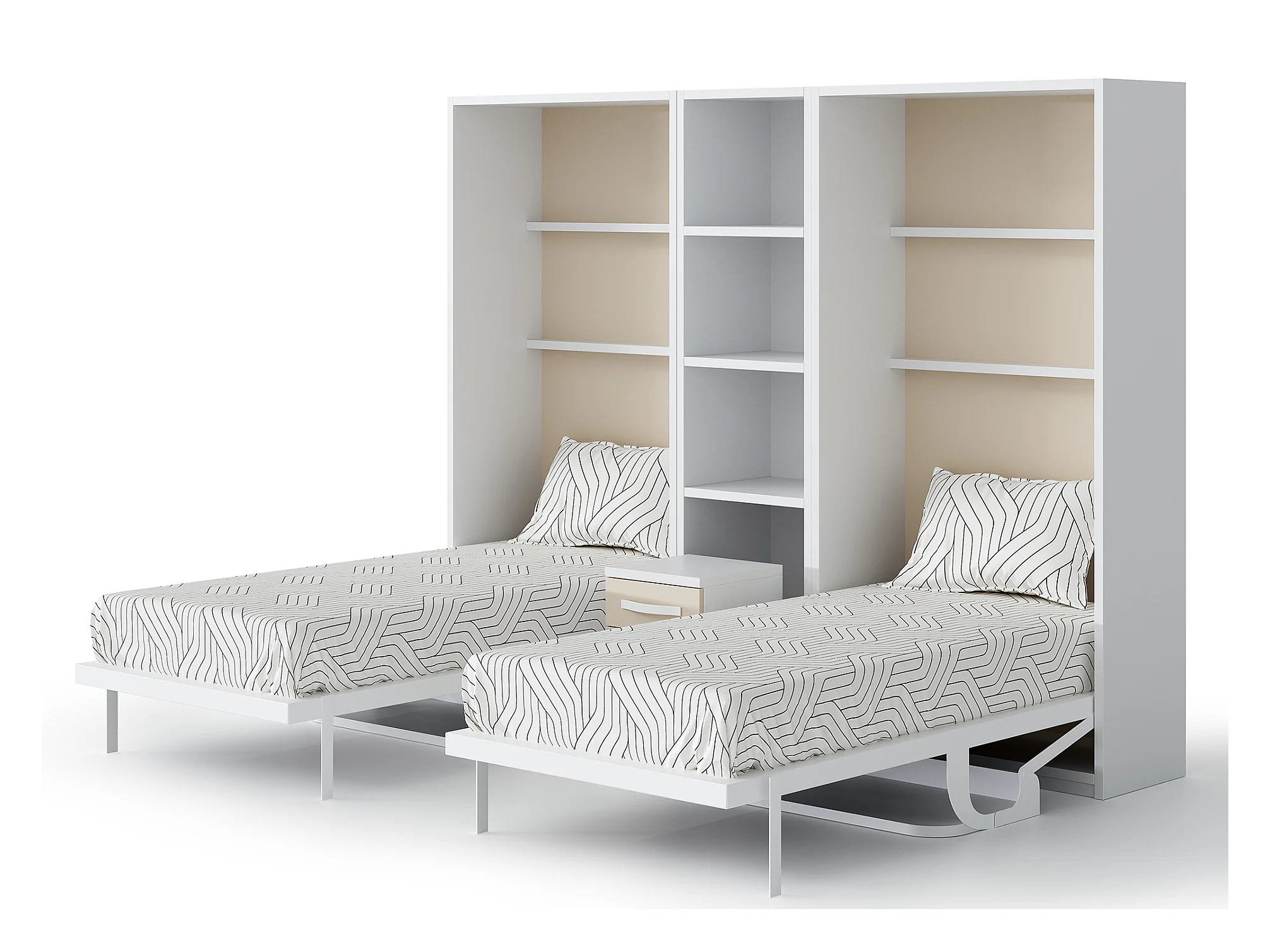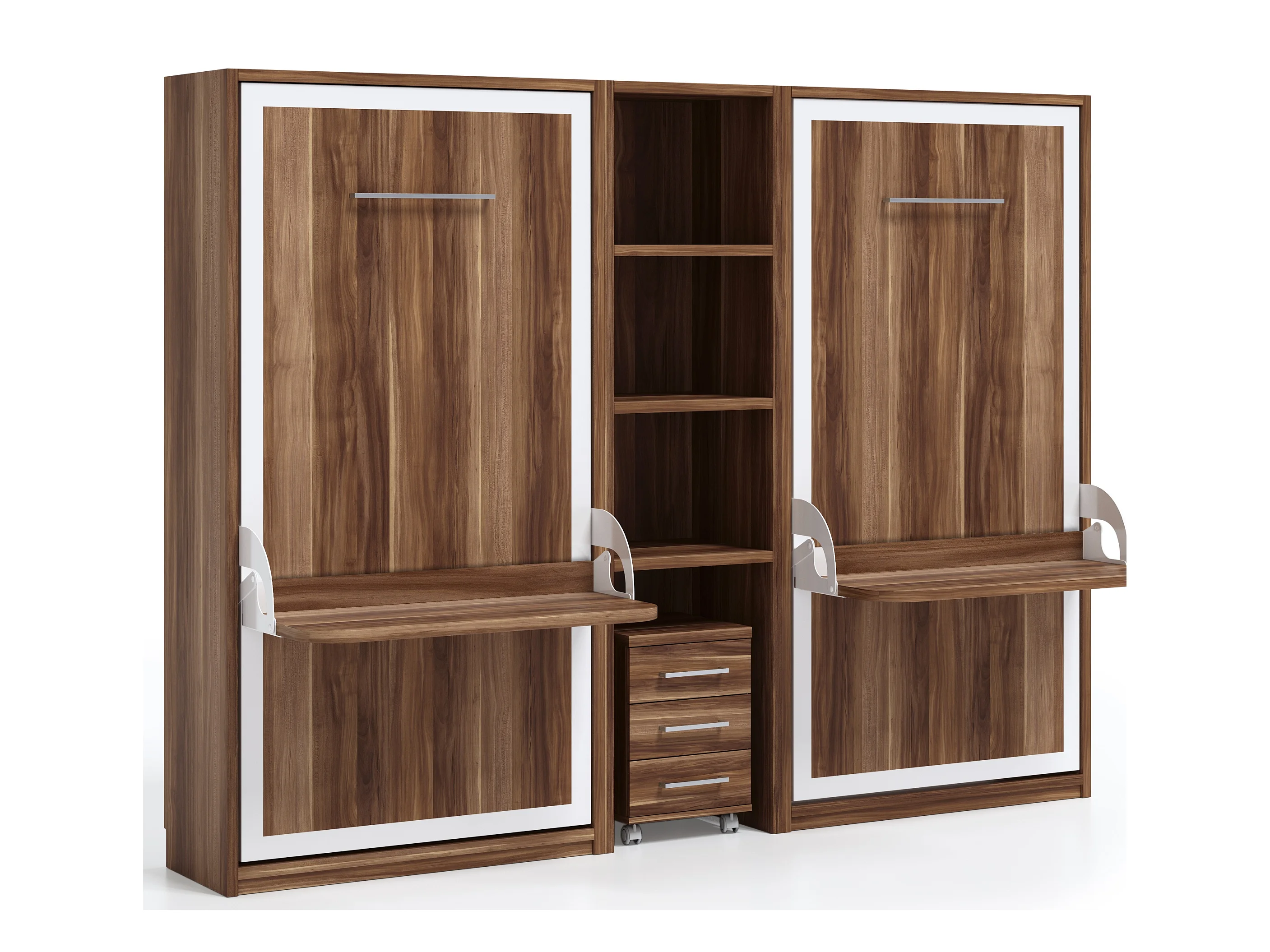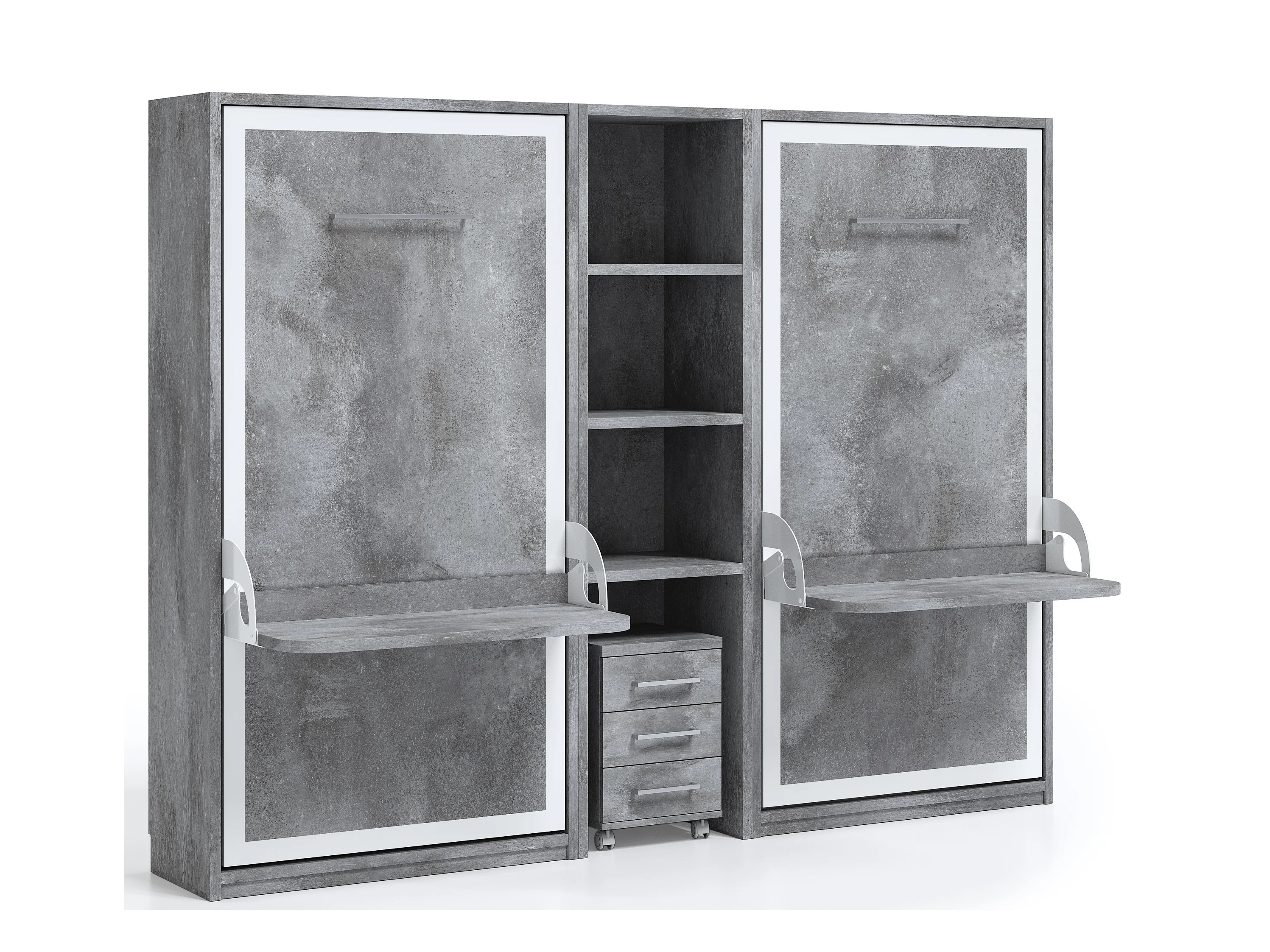 2 uitschuifbare bedden 140x190 met bureau en centrale Studante-plank-Facade Houtskool grijs