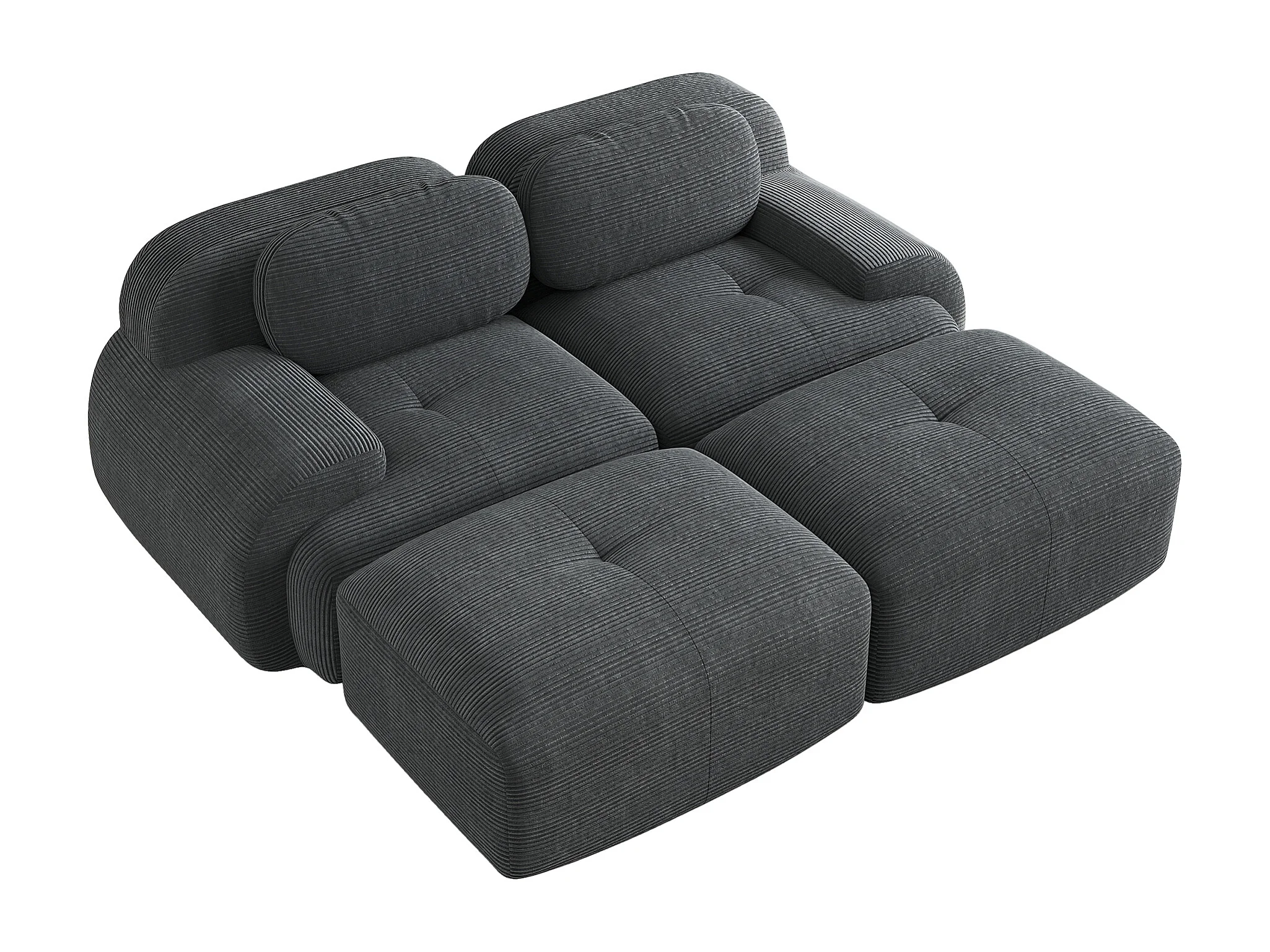 2-zits bank van ribfluweel met armleuningen en poef, grijs - geschikt voor woonkamer en slaapkamer